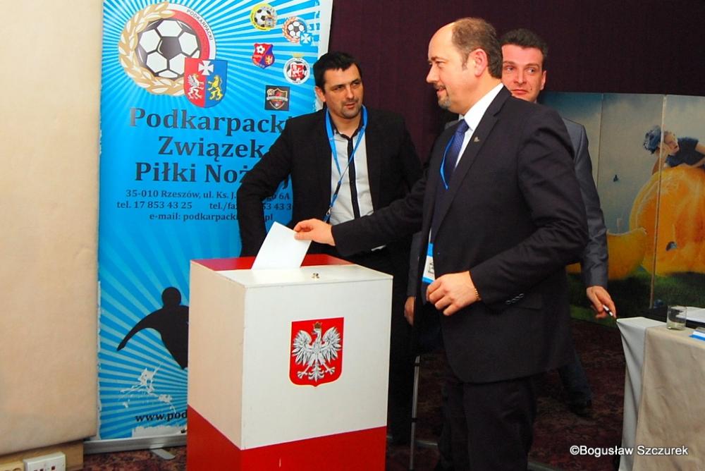 Zdjęcia z wyborów nowego prezesa Podkarpackiego Związku Piłki Nożnej, które odbyło się podczas walnego zebrania sprawozdawczo-wyborczego w Hotelu Rzeszów. Nowym prezesem został Mieczysław Golba.