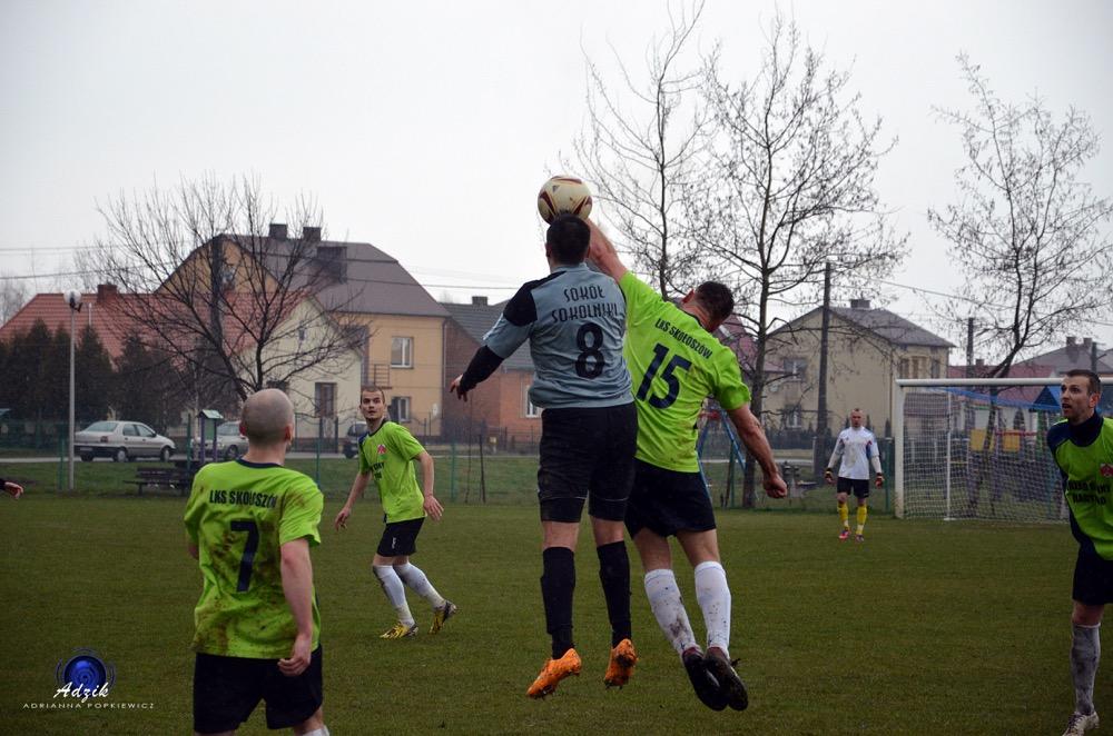 - 4 liga podkarpacka, 17. kolejka: Sokół Sokolniki - LKS Skołoszów 1-2 (26.03.2016 / fot. Adrianna Popkiewicz)