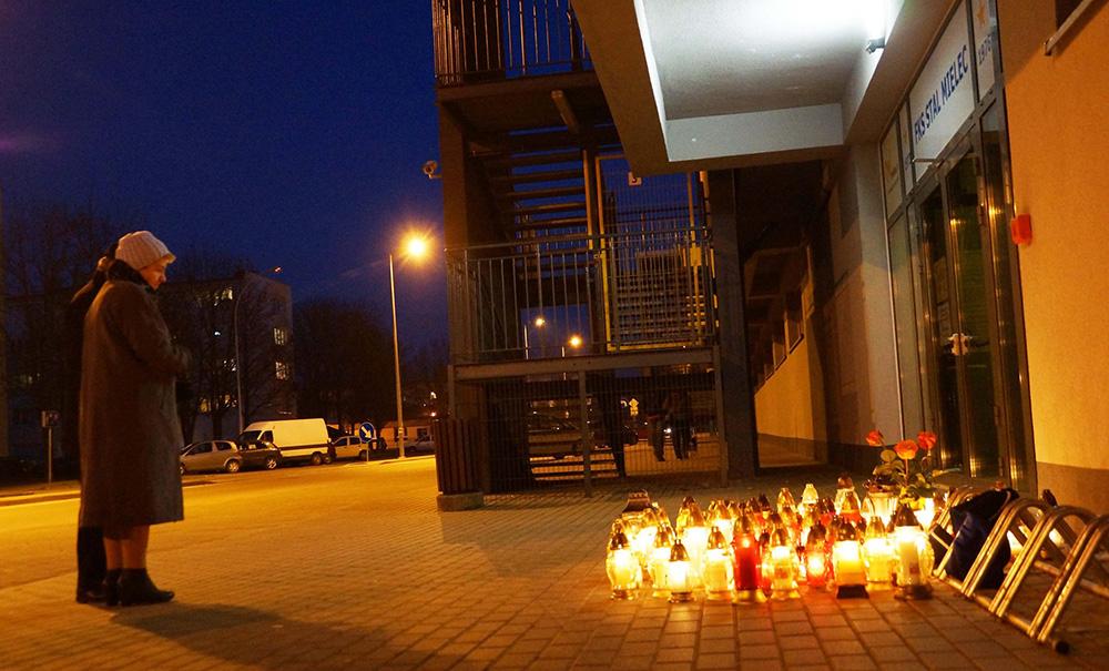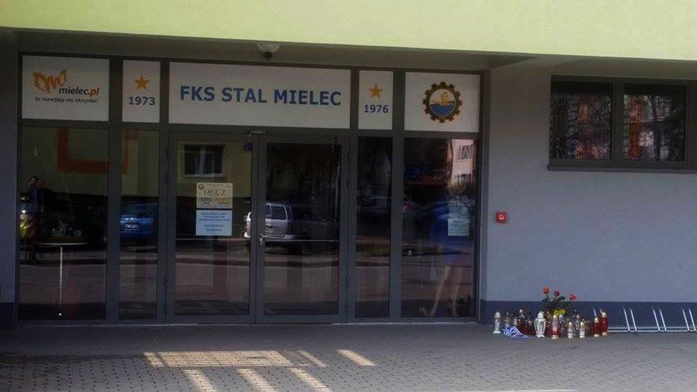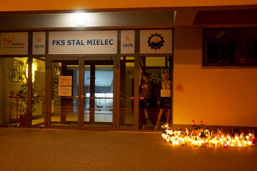 - Kibice Stali Mielec zapalają znicze pod siedzibą klubu chcąc upamiętnić piłkarzy Wólczanki Wólka Pełkińska, którzy zginęli w wypadku w Weryni. Tragiczną śmierć ponieśli Mariusz Korzępa, Kamil Oślizło, Kamil Pydych, Rafał Pydych i Patryk Szewczak. Wszyscy występowali kiedyś w Stali (fot. promocja.mielec.pl)
