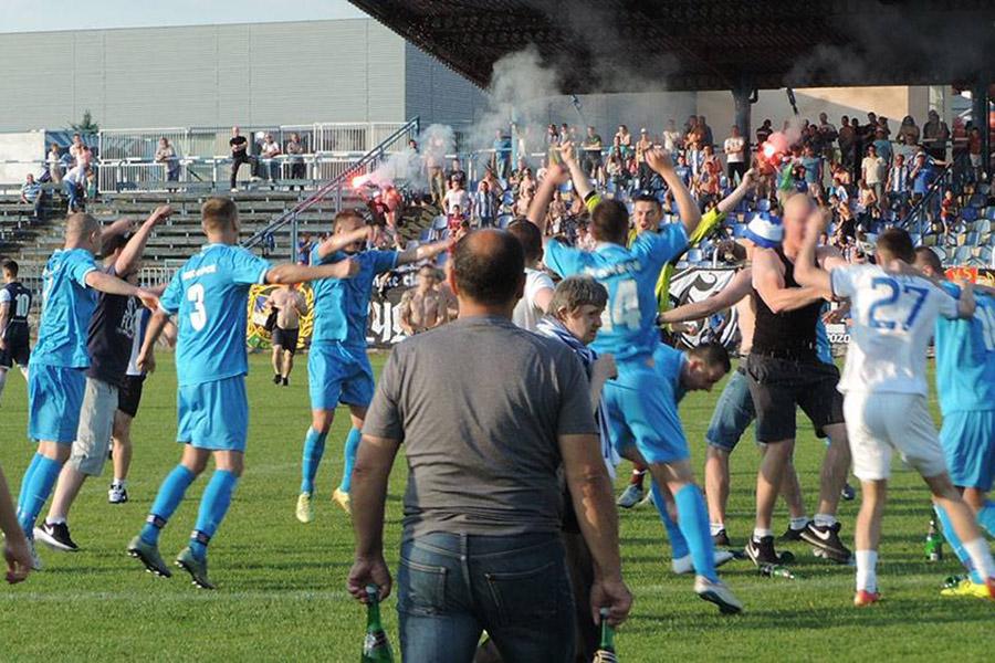 Po spotkaniu trwała feta, w której uczestniczyło około 400 kibiców. Zobacz film.