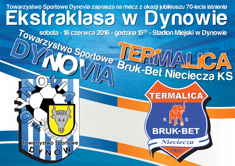 Piątoligowa Dynovia Dynów obchodzi w tym roku 70-lecie istnienia klubu. Z tej okazji zagra w meczu pokazowym z ekstraklasową Bruk-Bet Termaliką Nieciecza.