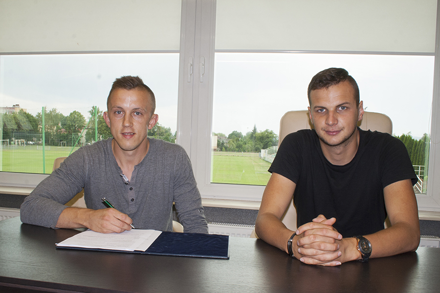 Marcin Brogowski (z lewej) oraz dyrektor sportowy Izolatora Boguchwała Paweł Kulik (fot. zksizolator.eu)
