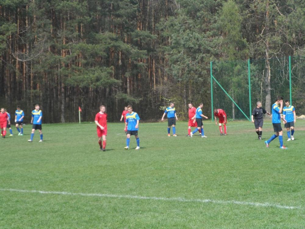 Marmury Przyłęk (na czerwono) po paru sezonach wracają do A klasy i szukają wzmocnień (fot. vigor-trzesowka.futbolowo.pl)