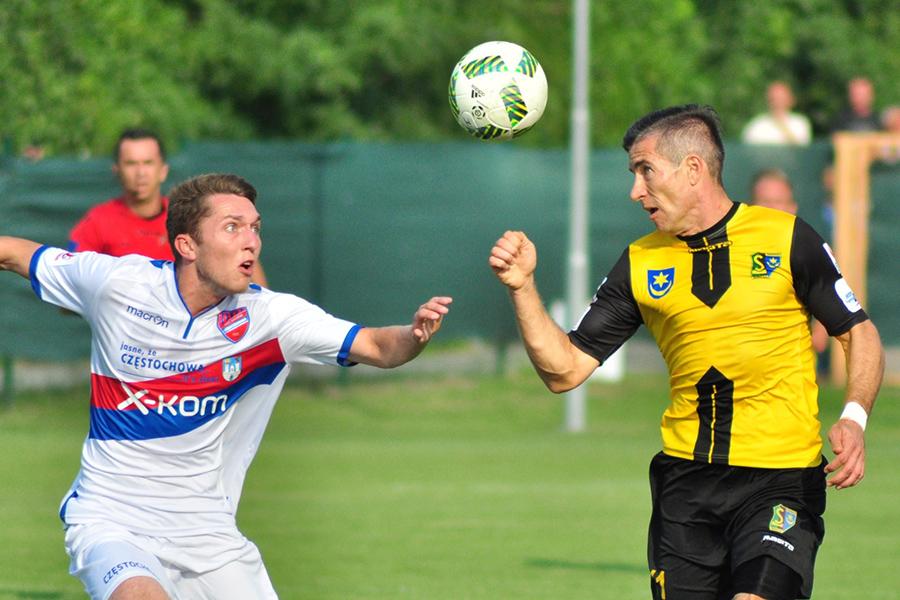 Siarka Tarnobrzeg (żółto-czarne stroje) zatrzymała niedawno Raków Częstochowa. W piątek powalczy o punkty z Polonią Warszawa.