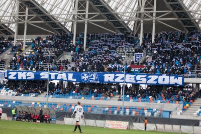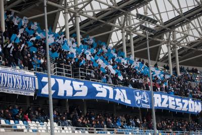 - 81. Derby Rzeszowa pomiędzy Stalą Rzeszów a Resovią. Na zdjęciach pochód kibiców Resovii w drodze na derby.