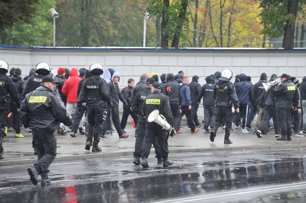 Pochód kibiców Resovii w drodze na 81. Derby Rzeszowa ze Stalą Rzeszów, które odbyły się w środę 12 października na Stadionie Miejskim.