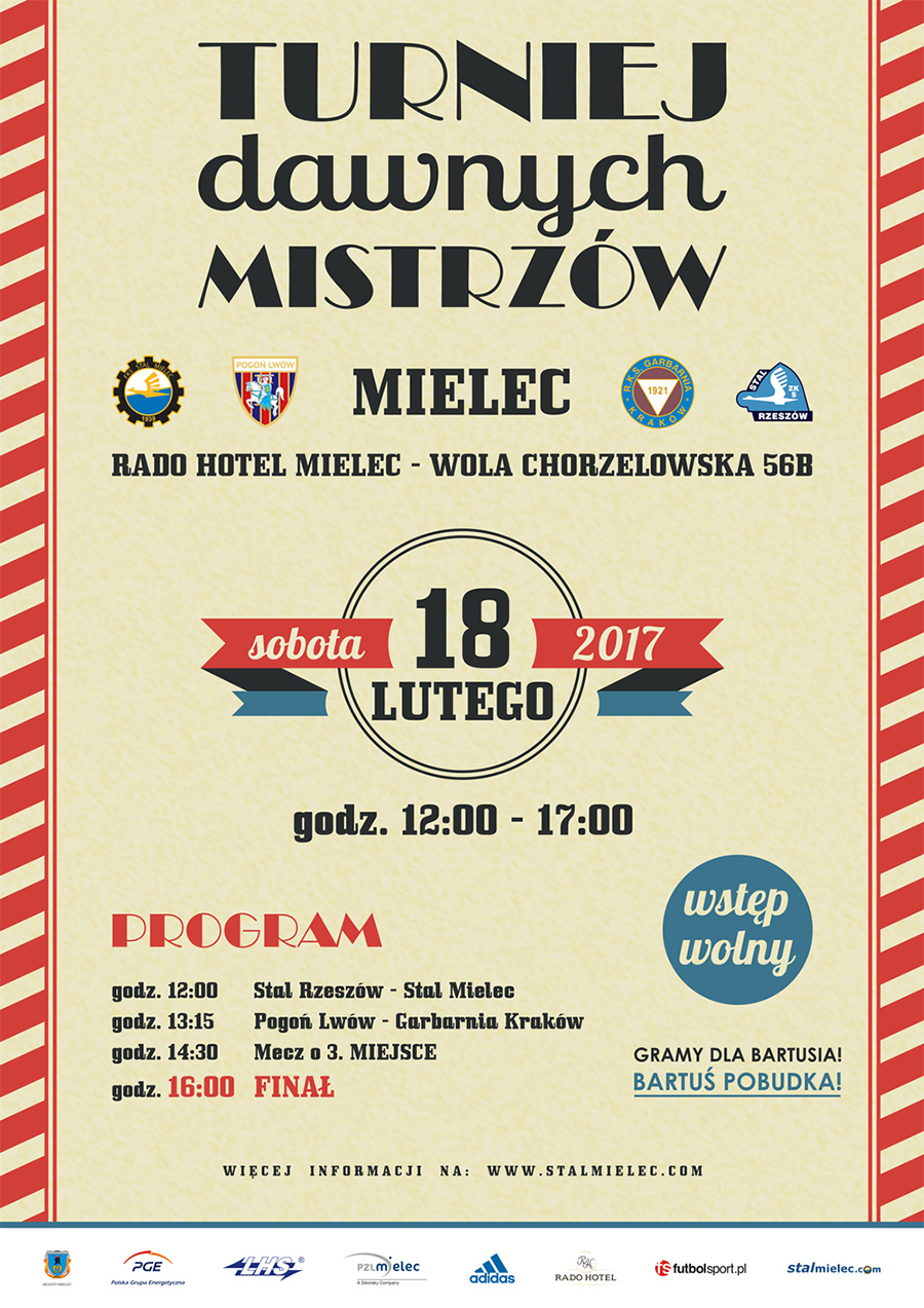 Turniej Dawnych Mistrzów 2017 odbędzie się już 18 lutego w Woli Chorzelowskiej. Udział wezmą w nim zespoły Stali Mielec, Stali Rzeszów, Pogoni Lwów i Garbarni Kraków. Zobaczcie pełny harmonogram imprezy.