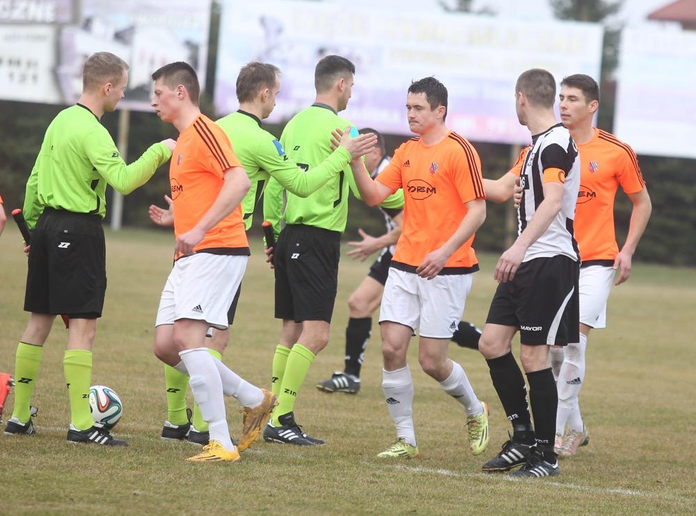 - Piast Tuczempy (pomarańczowe koszulki) wygrał przed własną publicznością z Czarnymi Jasło na inaugurację piłkarskiej wiosny w 4 lidze podkarpackiej. Gospodarze zwyciężyli 2-1 (fot. Patryk Górecki)