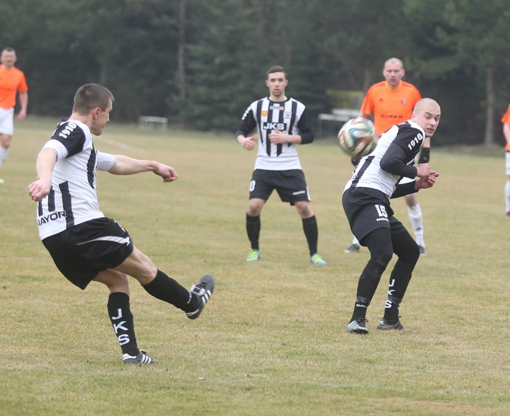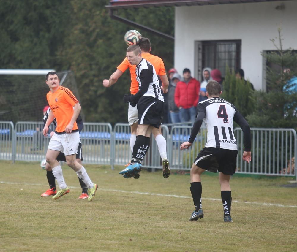 - Piast Tuczempy (pomarańczowe koszulki) wygrał przed własną publicznością z Czarnymi Jasło na inaugurację piłkarskiej wiosny w 4 lidze podkarpackiej. Gospodarze zwyciężyli 2-1 (fot. Patryk Górecki)