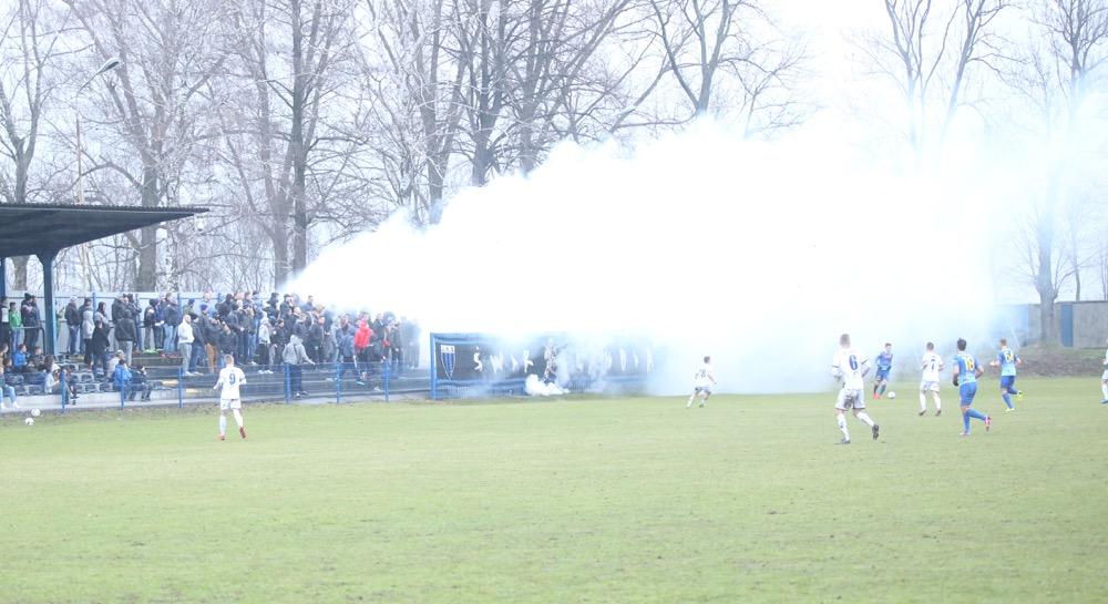 - 18.03.2017, sobota: JKS Jarosław (białe stroje) przegrali 1-2 w meczu 3 ligi gr. IV z Motorem Lublin (fot. Patryk Górecki)