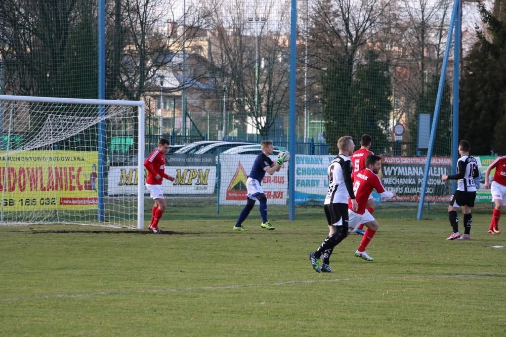 - 19.03.2017, niedziela. Piłkarze KS Wiązownica (czerwono-białe stroje) wygrali na wyjeździe z Czarnymi Jasło 5-1 w meczu 4 ligi podkarpackiej (fot. Natalia Styś)