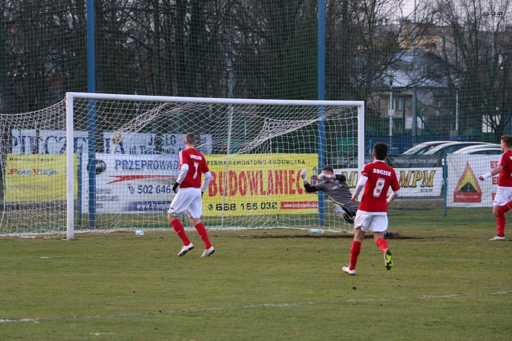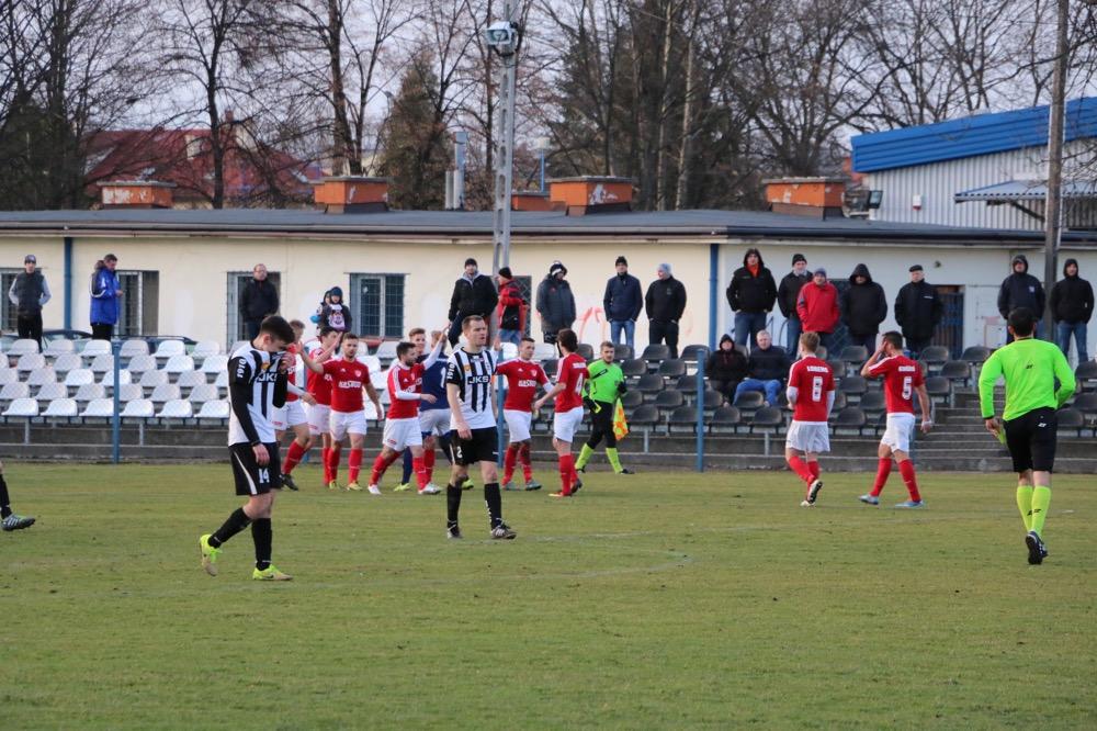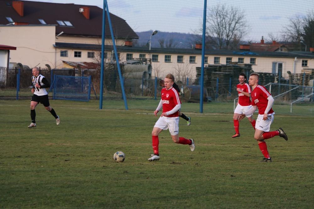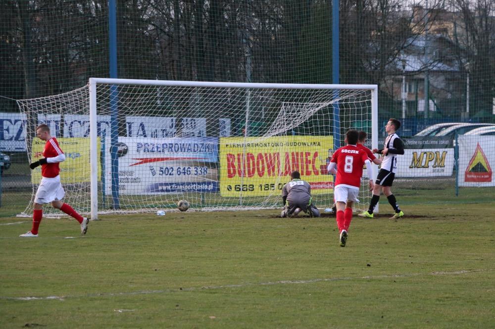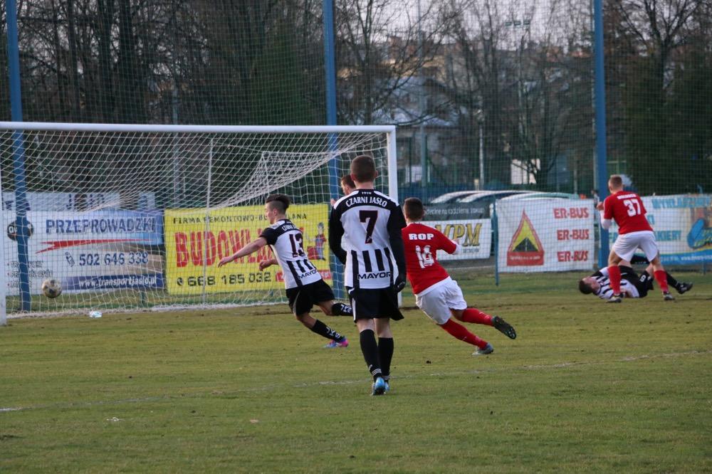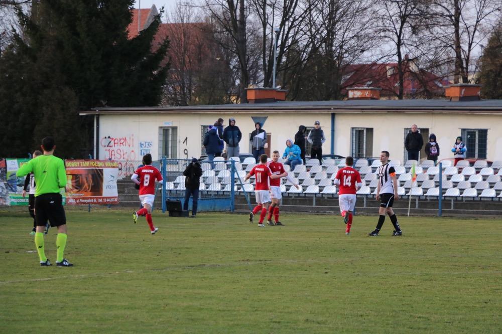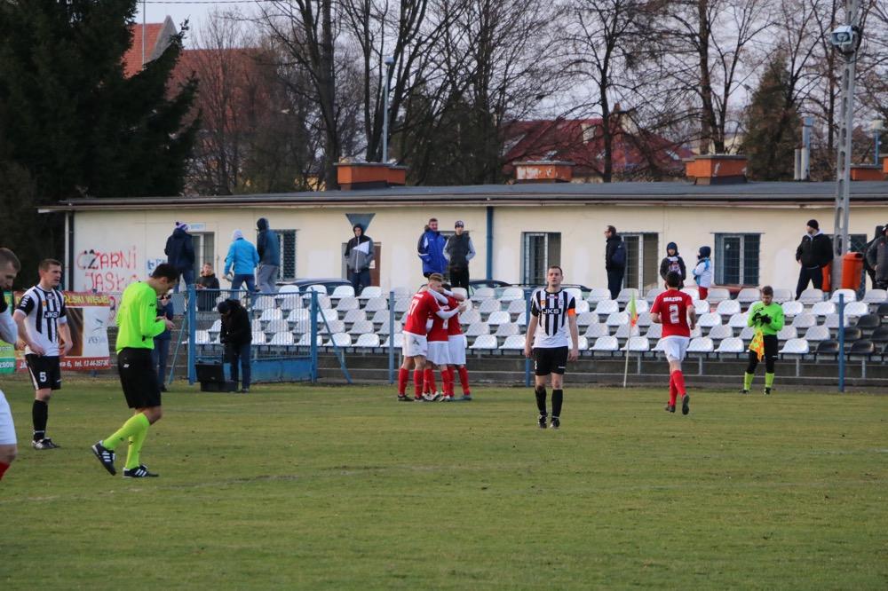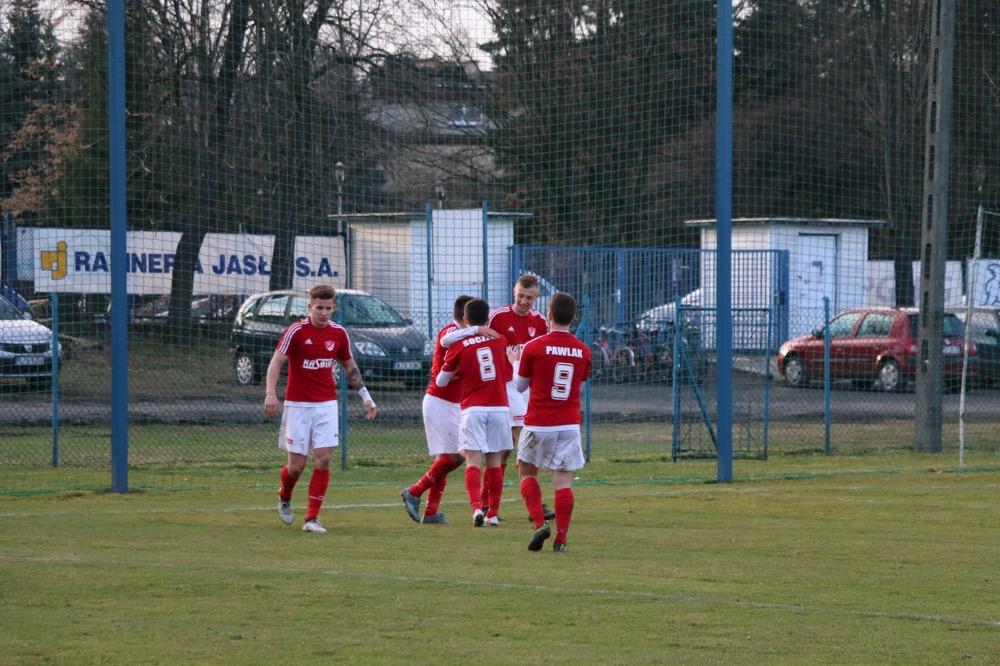 - 19.03.2017, niedziela. Piłkarze KS Wiązownica (czerwono-białe stroje) wygrali na wyjeździe z Czarnymi Jasło 5-1 w meczu 4 ligi podkarpackiej (fot. Natalia Styś)