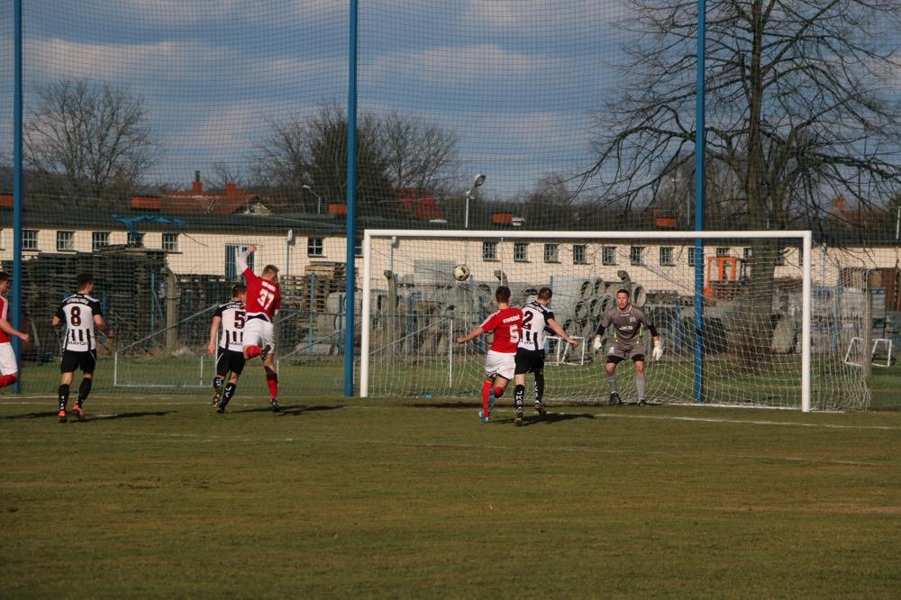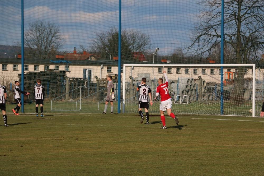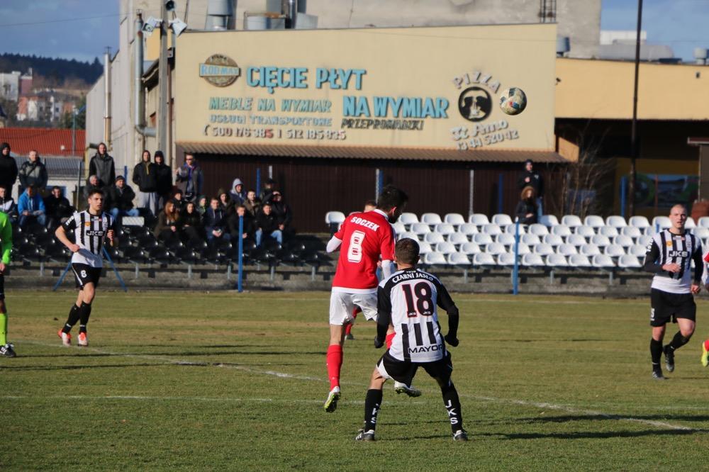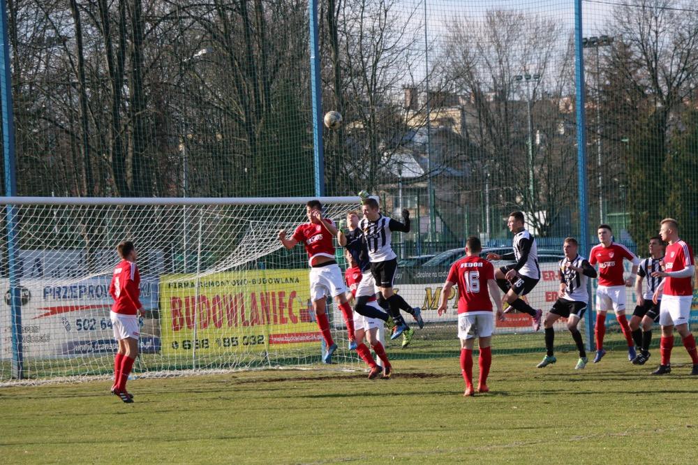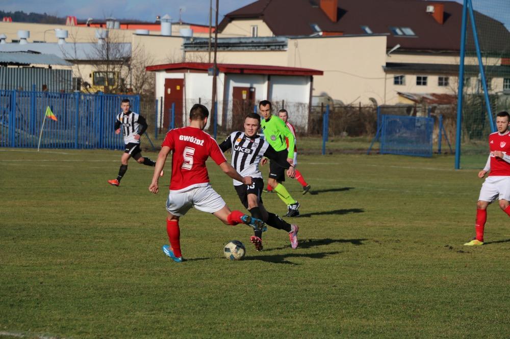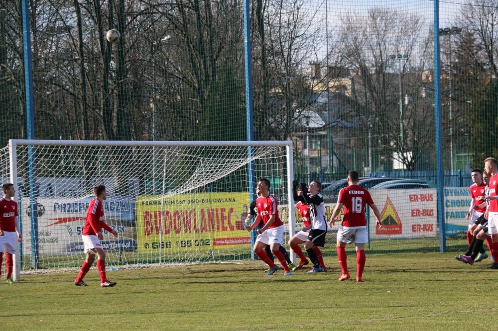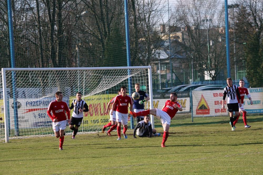 - 19.03.2017, niedziela. Piłkarze KS Wiązownica (czerwono-białe stroje) wygrali na wyjeździe z Czarnymi Jasło 5-1 w meczu 4 ligi podkarpackiej (fot. Natalia Styś)