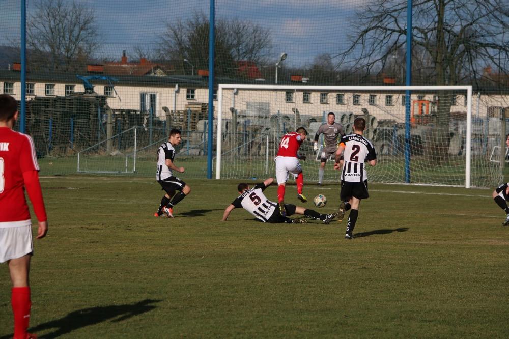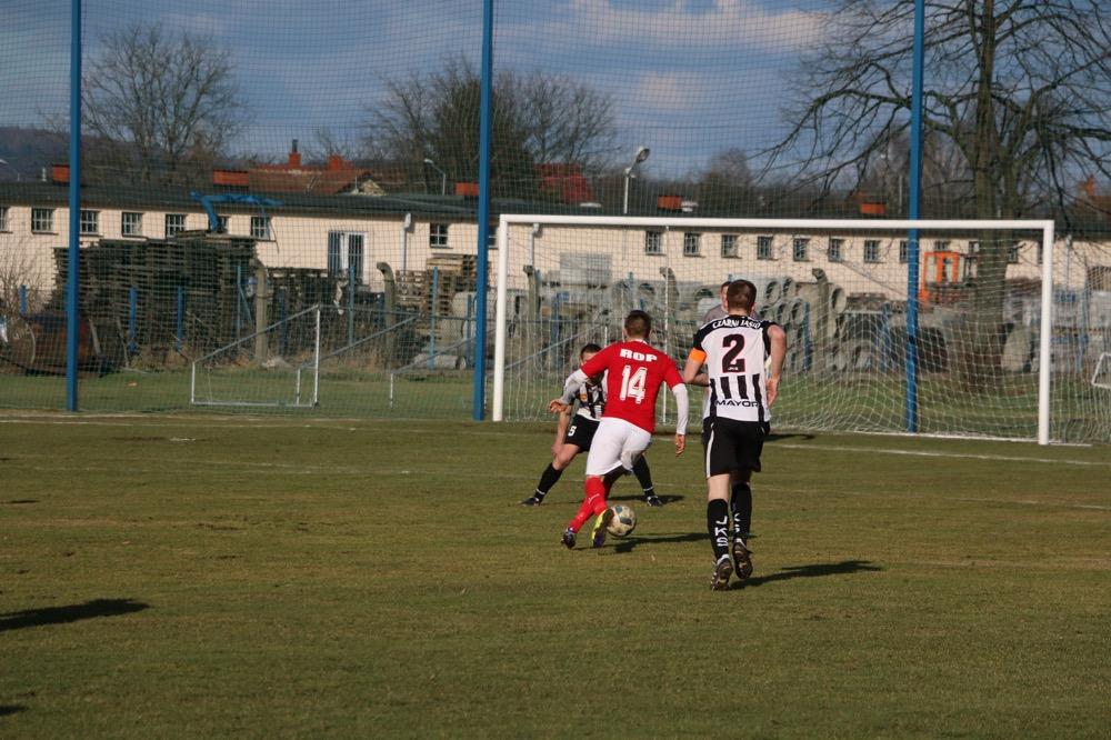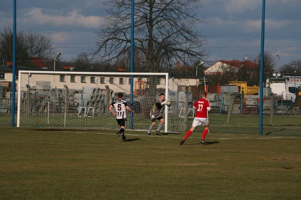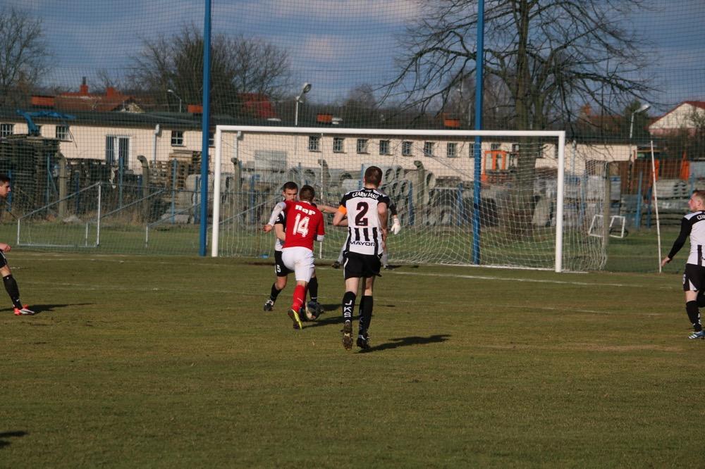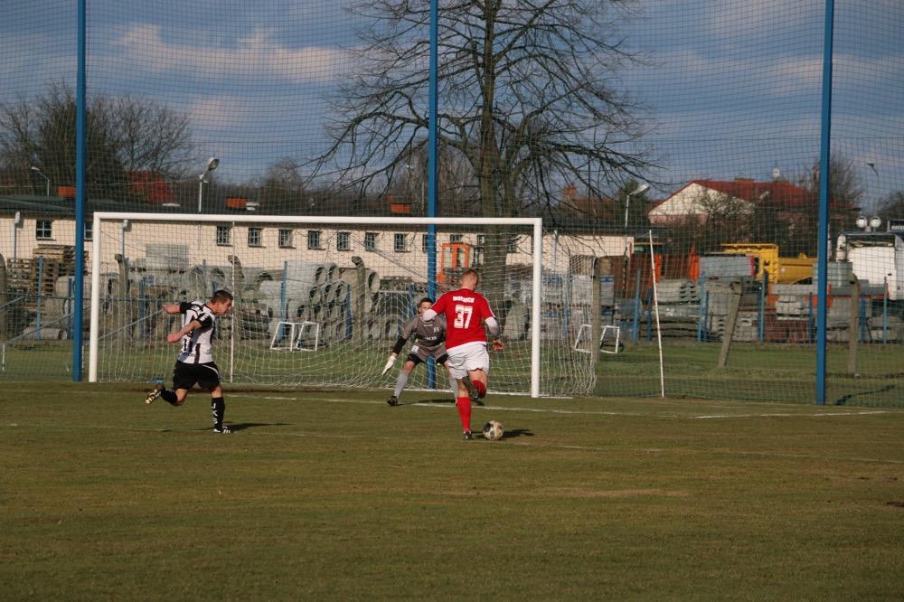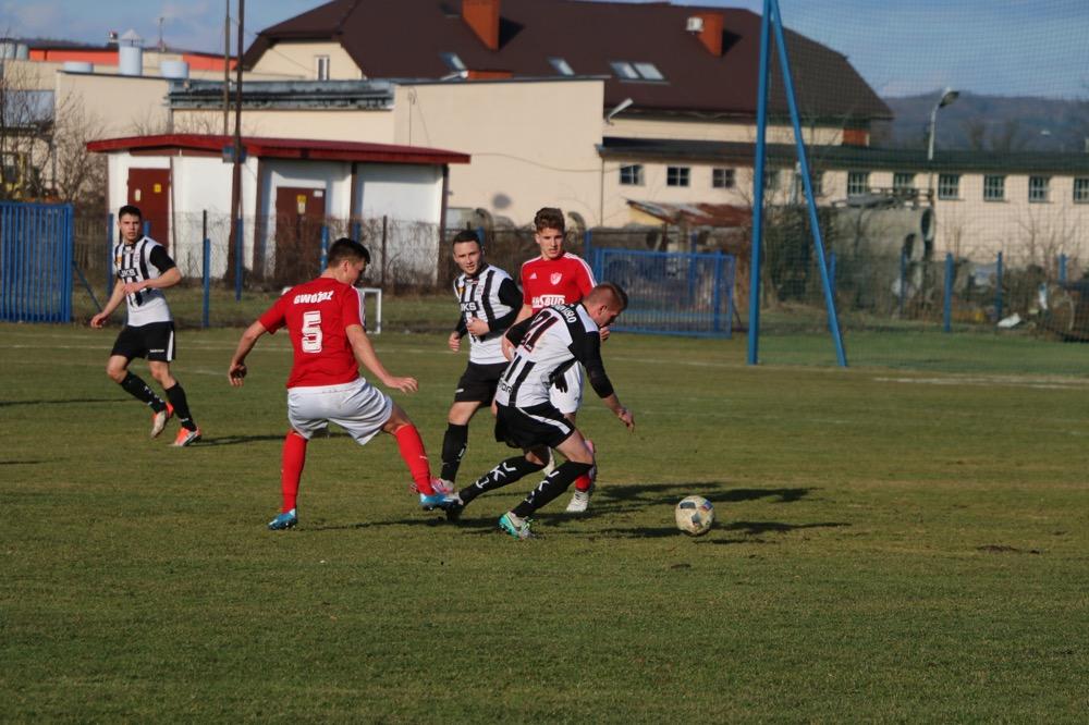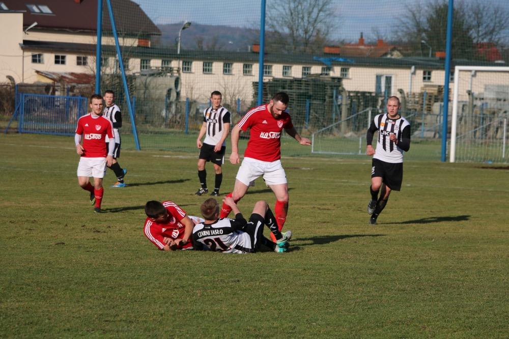 - 19.03.2017, niedziela. Piłkarze KS Wiązownica (czerwono-białe stroje) wygrali na wyjeździe z Czarnymi Jasło 5-1 w meczu 4 ligi podkarpackiej (fot. Natalia Styś)