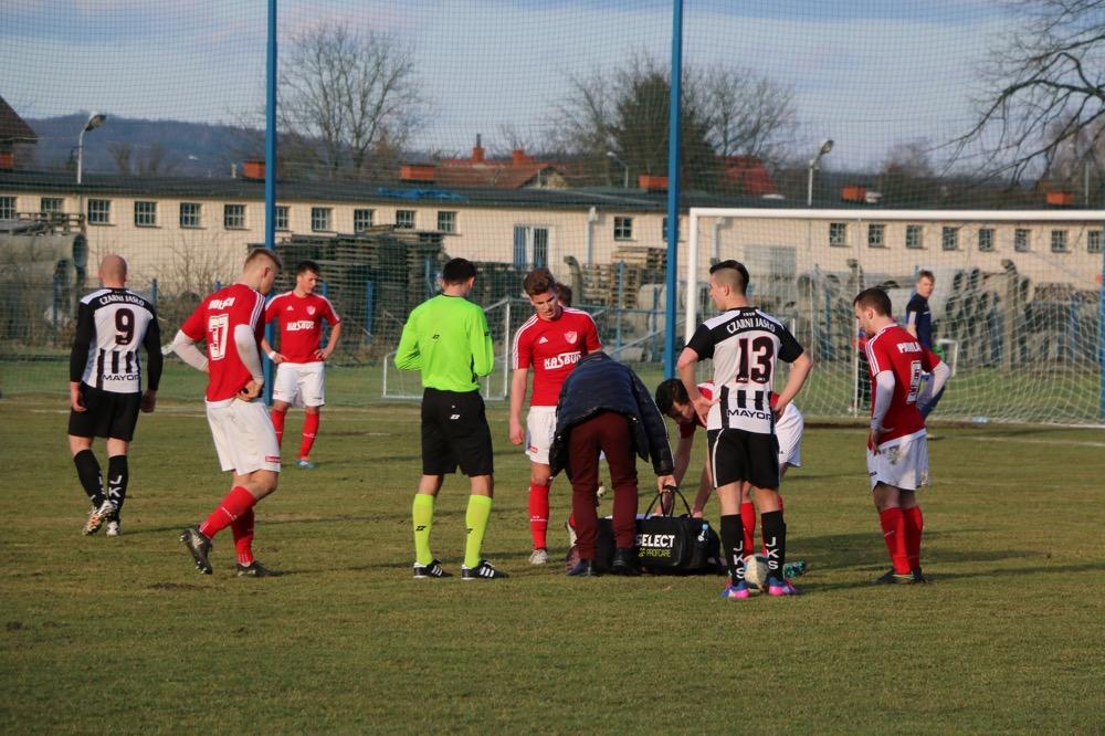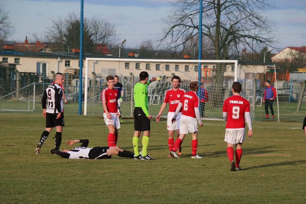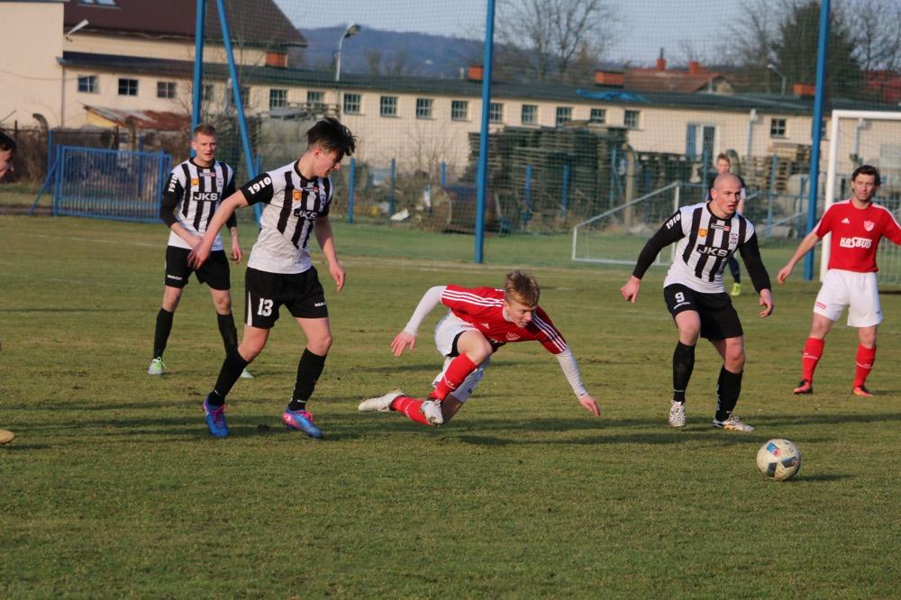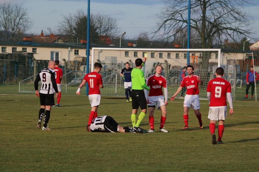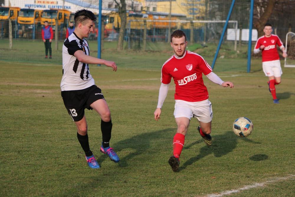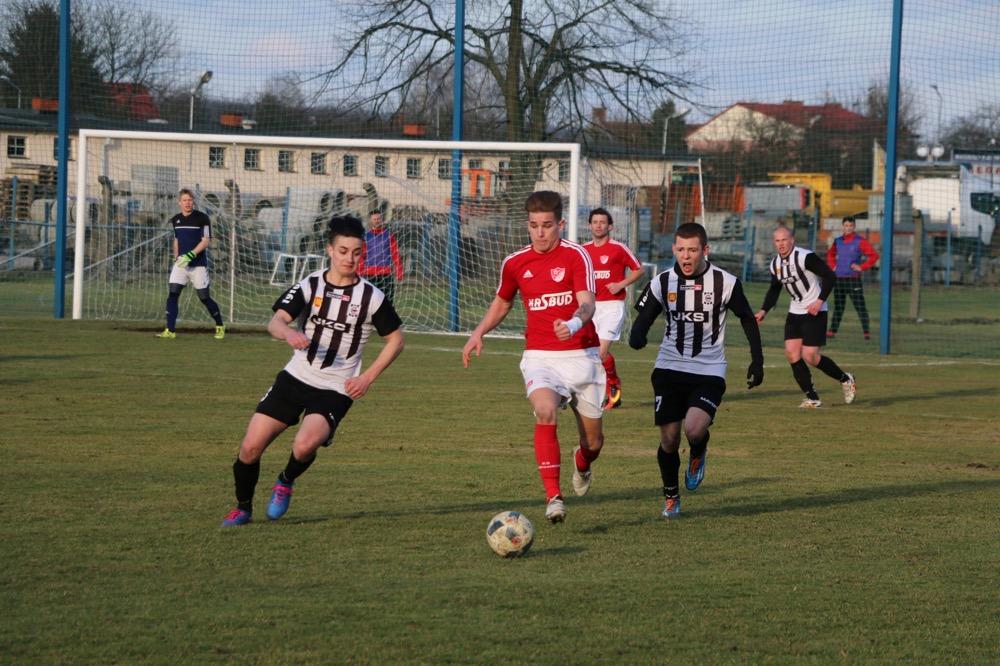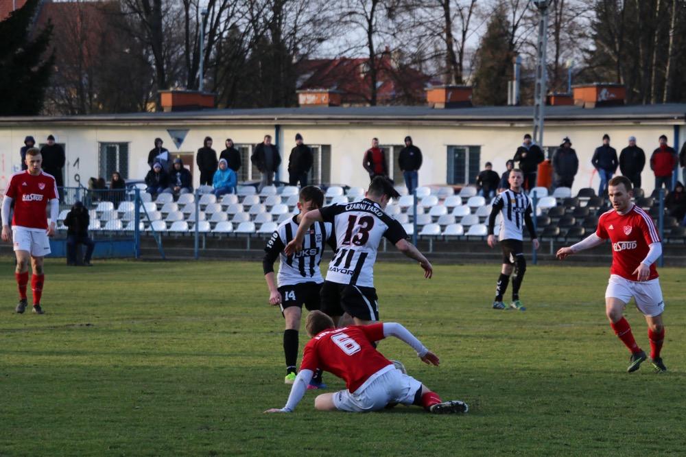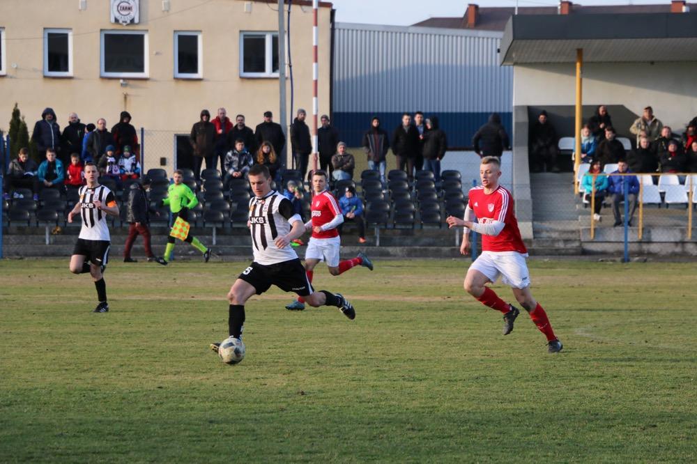 - 19.03.2017, niedziela. Piłkarze KS Wiązownica (czerwono-białe stroje) wygrali na wyjeździe z Czarnymi Jasło 5-1 w meczu 4 ligi podkarpackiej (fot. Natalia Styś)
