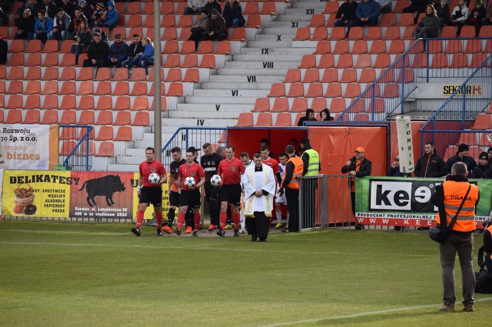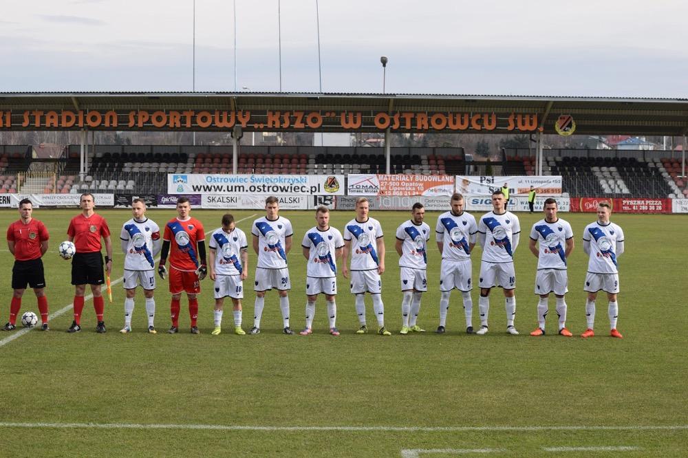 - 25.03.2017, sobota: JKS Jarosław (granatowo-czarne stroje) wygrał w wyjazdowym meczu z KSZO Ostrowiec Świętokrzyski, aktualnym liderem 3 ligi grupy IV. Podkarpacki zespół zwyciężył 2-1 (fot. Dominik Budzowski)