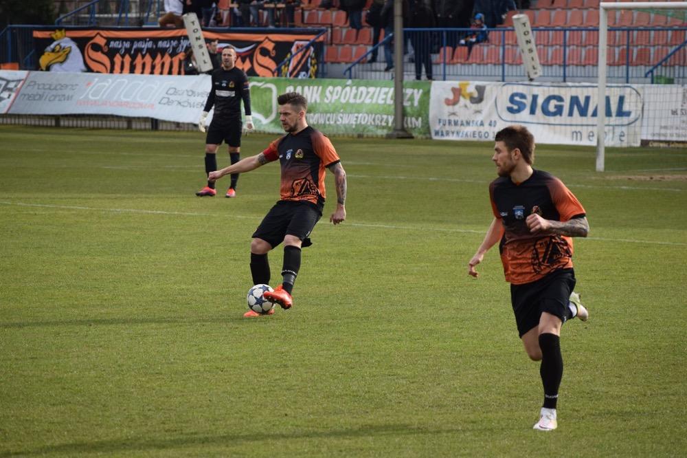 - 25.03.2017, sobota: JKS Jarosław (granatowo-czarne stroje) wygrał w wyjazdowym meczu z KSZO Ostrowiec Świętokrzyski, aktualnym liderem 3 ligi grupy IV. Podkarpacki zespół zwyciężył 2-1 (fot. Dominik Budzowski)