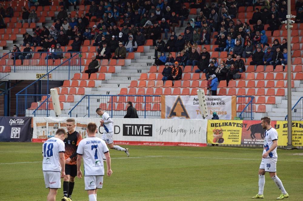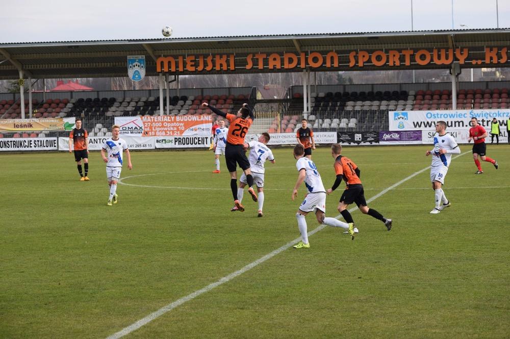- 25.03.2017, sobota: JKS Jarosław (granatowo-czarne stroje) wygrał w wyjazdowym meczu z KSZO Ostrowiec Świętokrzyski, aktualnym liderem 3 ligi grupy IV. Podkarpacki zespół zwyciężył 2-1 (fot. Dominik Budzowski)