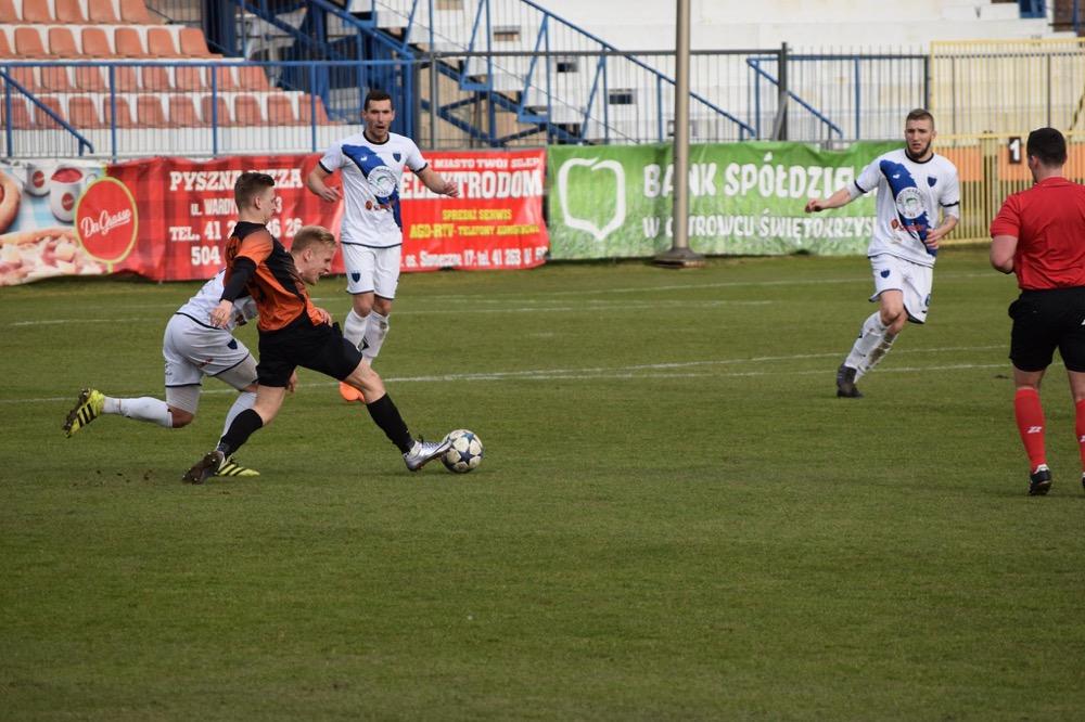 - 25.03.2017, sobota: JKS Jarosław (granatowo-czarne stroje) wygrał w wyjazdowym meczu z KSZO Ostrowiec Świętokrzyski, aktualnym liderem 3 ligi grupy IV. Podkarpacki zespół zwyciężył 2-1 (fot. Dominik Budzowski)