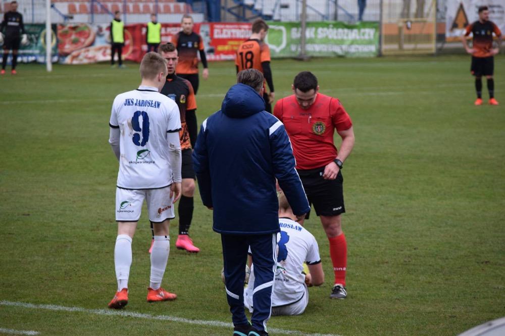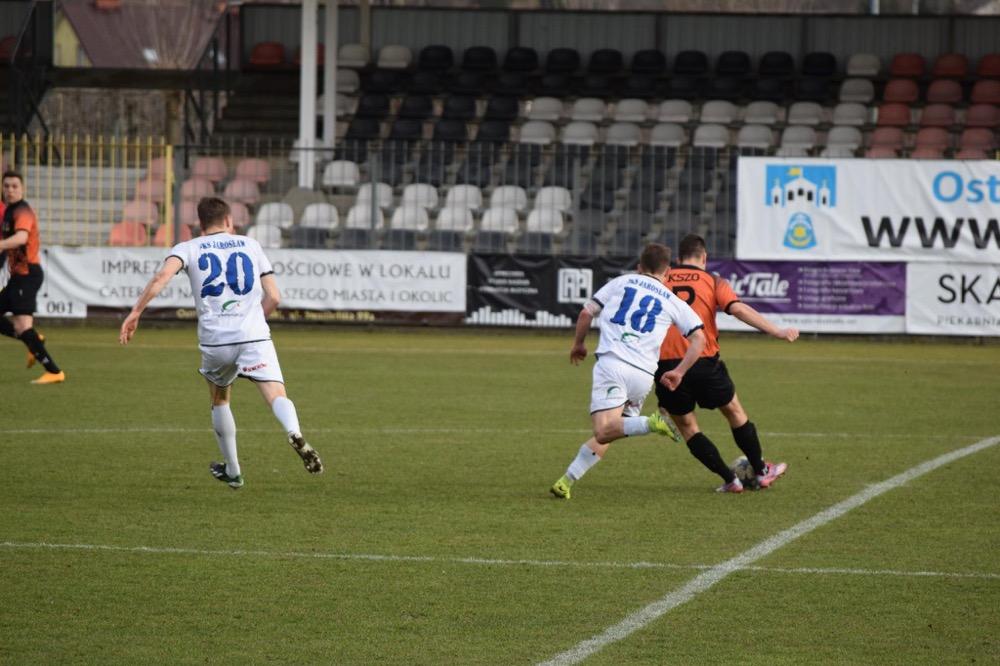 - 25.03.2017, sobota: JKS Jarosław (granatowo-czarne stroje) wygrał w wyjazdowym meczu z KSZO Ostrowiec Świętokrzyski, aktualnym liderem 3 ligi grupy IV. Podkarpacki zespół zwyciężył 2-1 (fot. Dominik Budzowski)
