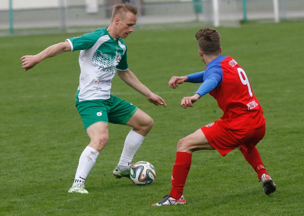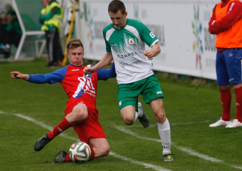 - Izolator Boguchwała (biało-zielone stroje) pokonał Polonię Przemyśl 2-1 w meczu 22. kolejki 4 ligi podkarpackiej.