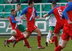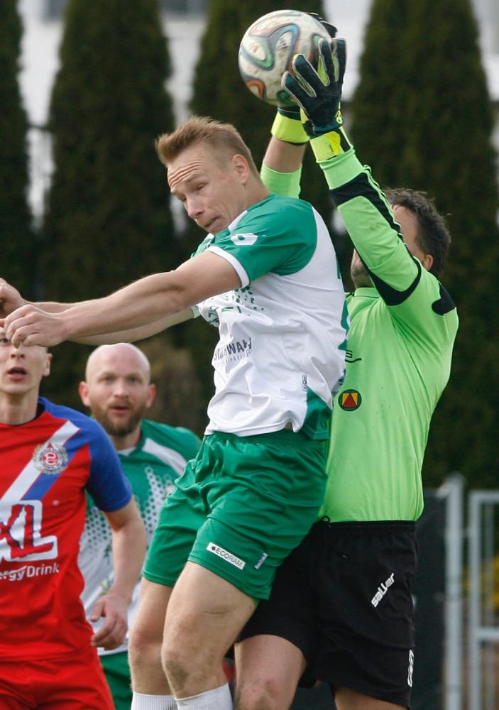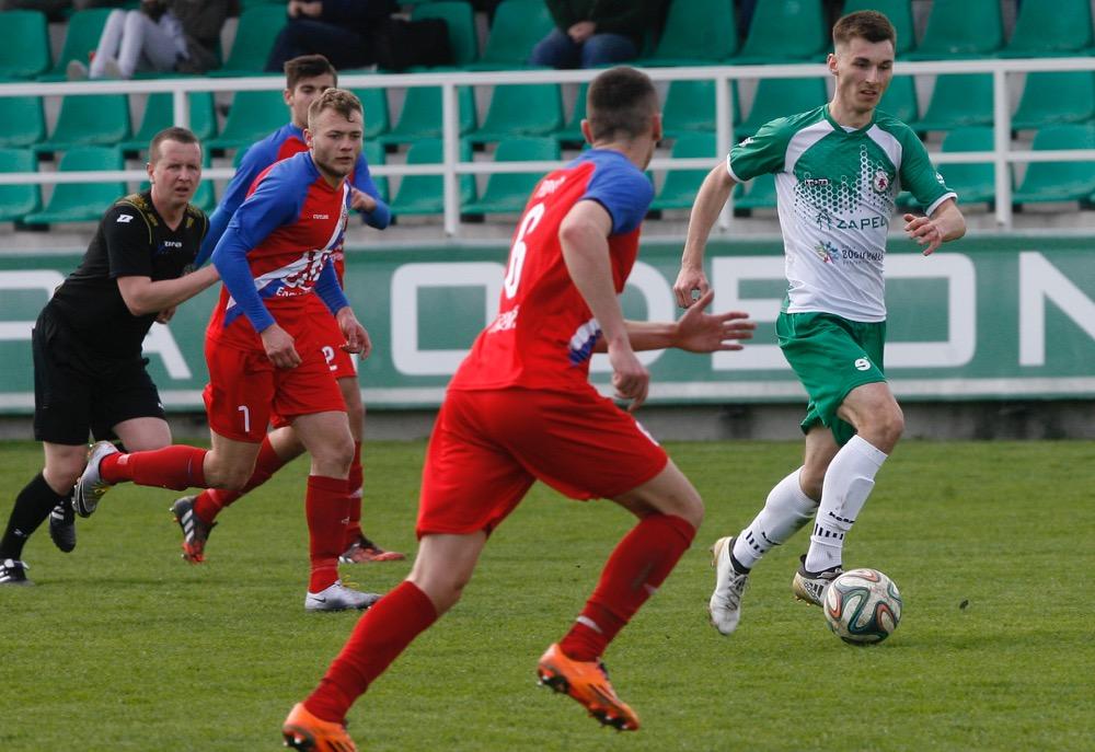 - Izolator Boguchwała (biało-zielone stroje) pokonał Polonię Przemyśl 2-1 w meczu 22. kolejki 4 ligi podkarpackiej.