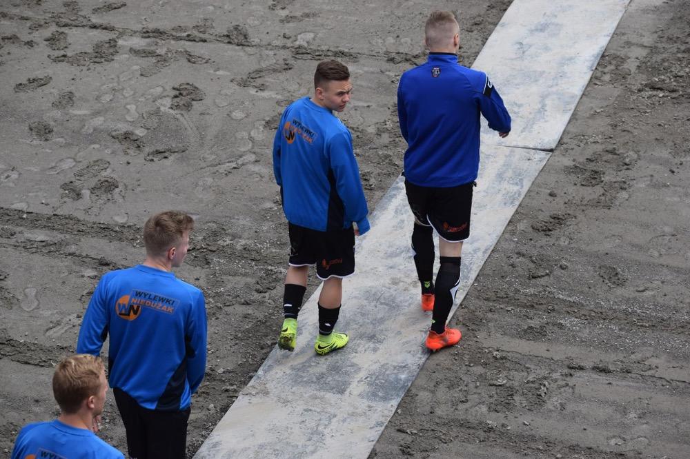 - Karpaty Krosno (biało-niebieskie stroje) zremisowały u siebie z JKS-em Jarosław w meczu 3 ligi grupy IV (fot. Dominik Budzowski)