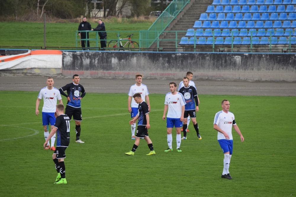 - Karpaty Krosno (biało-niebieskie stroje) zremisowały u siebie z JKS-em Jarosław w meczu 3 ligi grupy IV (fot. Dominik Budzowski)