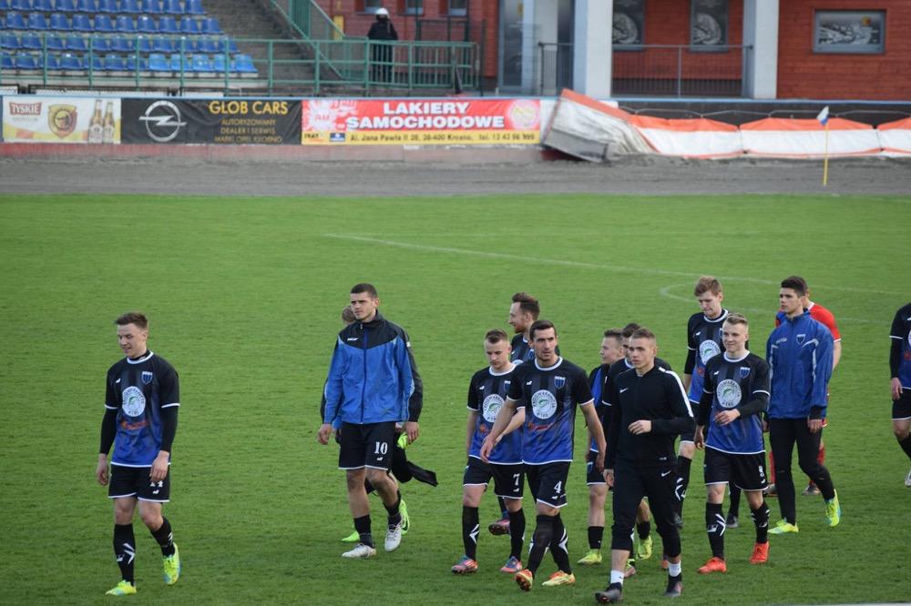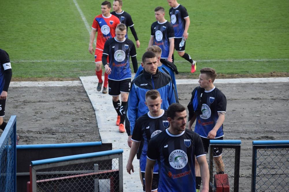 - Karpaty Krosno (biało-niebieskie stroje) zremisowały u siebie z JKS-em Jarosław w meczu 3 ligi grupy IV (fot. Dominik Budzowski)