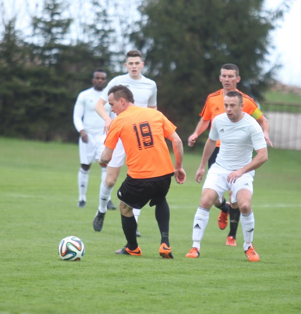 - Piast Tuczempy (pomarańczowo-czarne stroje) wygrał u siebie z LKS-em Pisarowce 2-0 w meczu 4 ligi podkarpackiej (fot. Patryk Górecki)