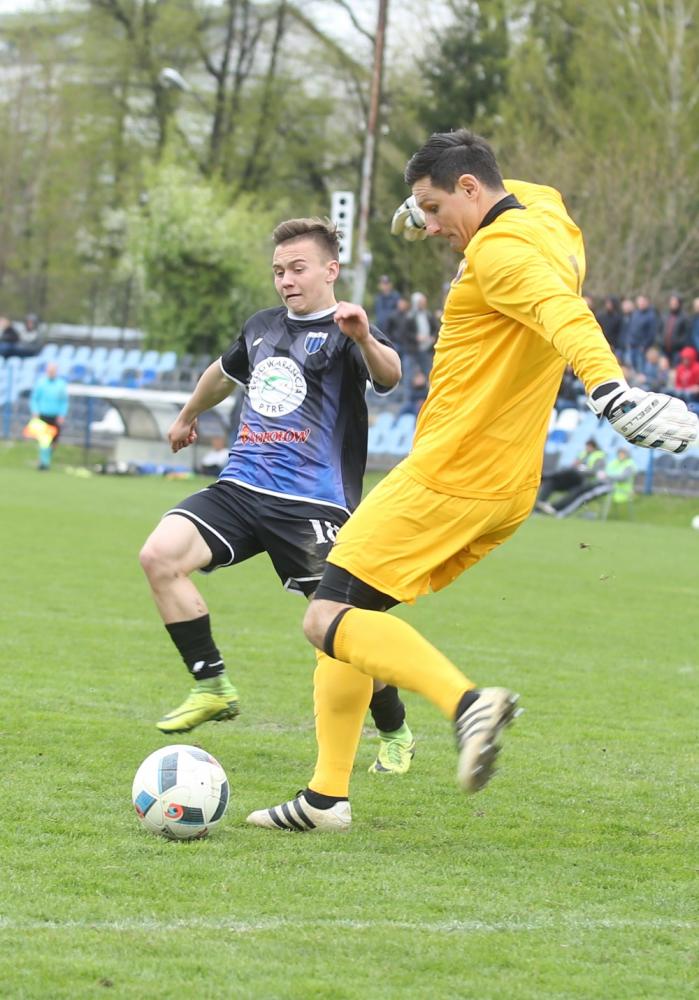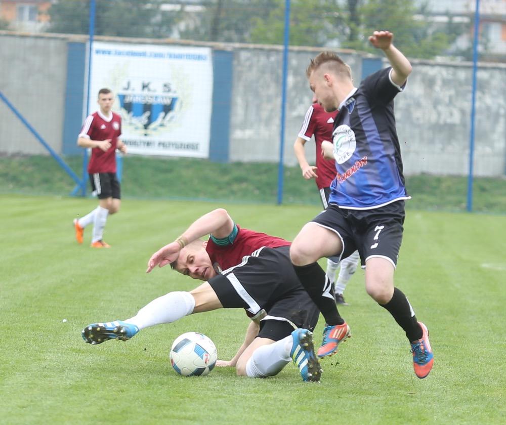 - JKS Jarosław (czarno-granatowe stroje) w Wielką Sobotę 15 kwietnia 2017 roku przegrał u siebie z Garbarnią Kraków 0-2. Było to spotkanie 3 ligi grupy IV (fot. Patryk Górecki)