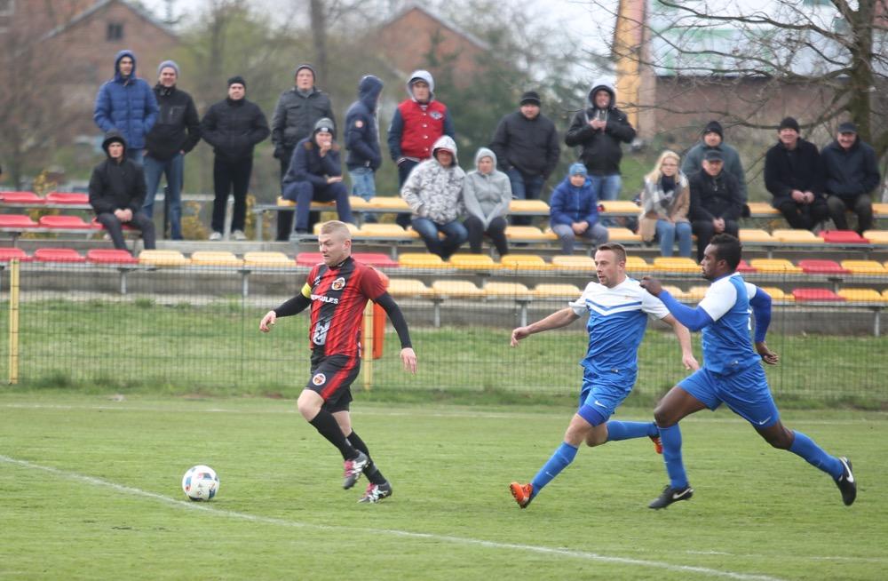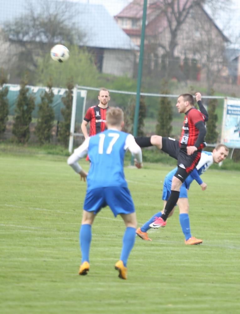 - 19.04.2017, środa: Wólczanka Wólka Pełkińska (czerwono-czarne stroje) wygrała z LKS-em Pisarowce 3-0 w meczu 24. kolejki 4 ligi podkarpackiej (fot. Patryk Górecki)