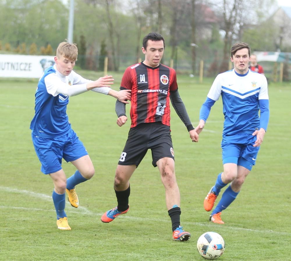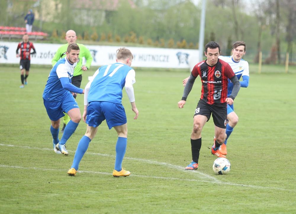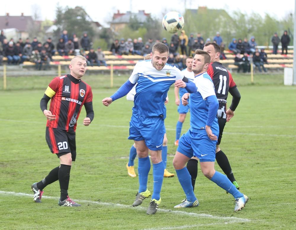 - 19.04.2017, środa: Wólczanka Wólka Pełkińska (czerwono-czarne stroje) wygrała z LKS-em Pisarowce 3-0 w meczu 24. kolejki 4 ligi podkarpackiej (fot. Patryk Górecki)