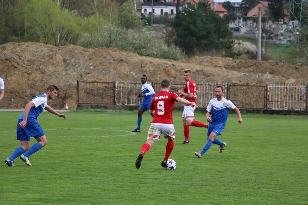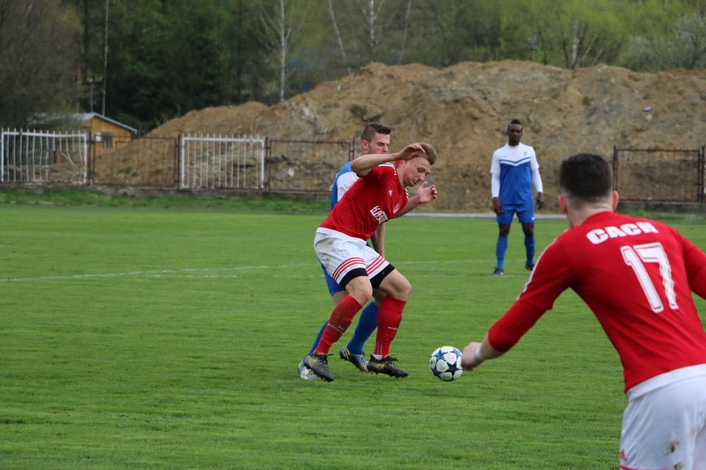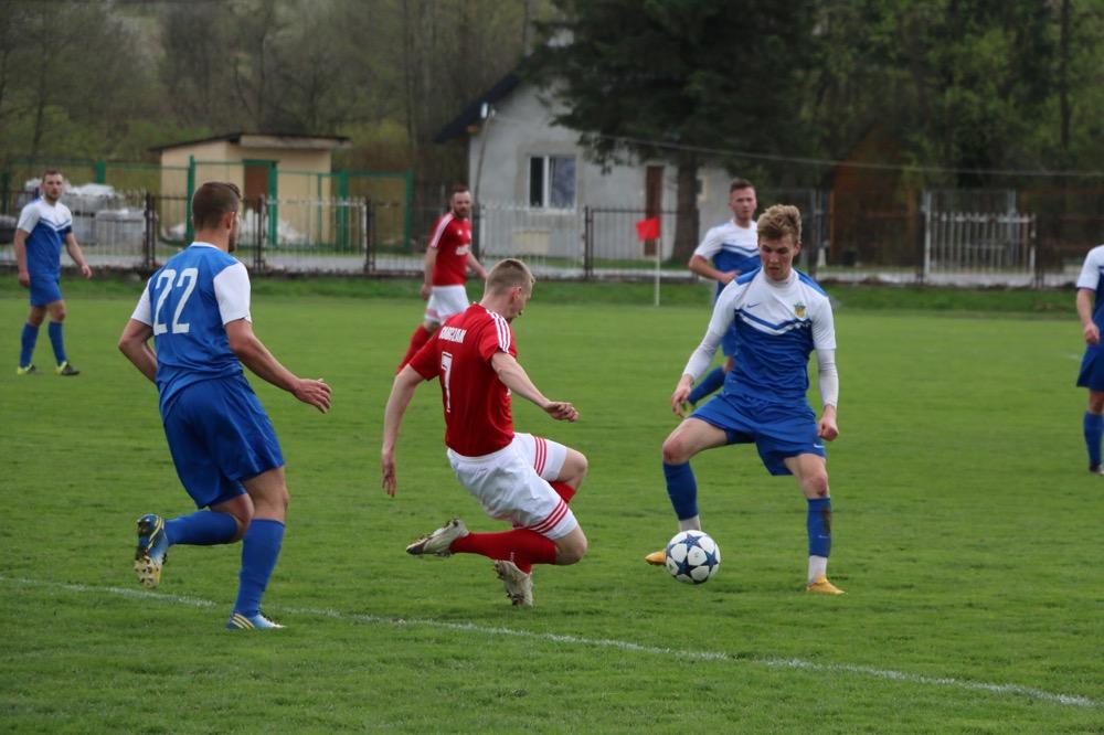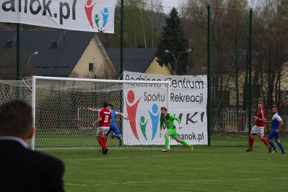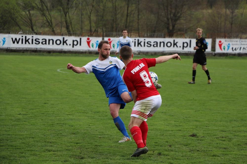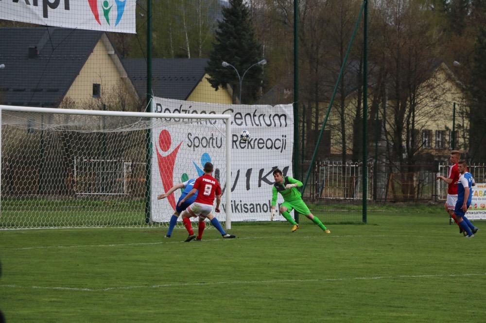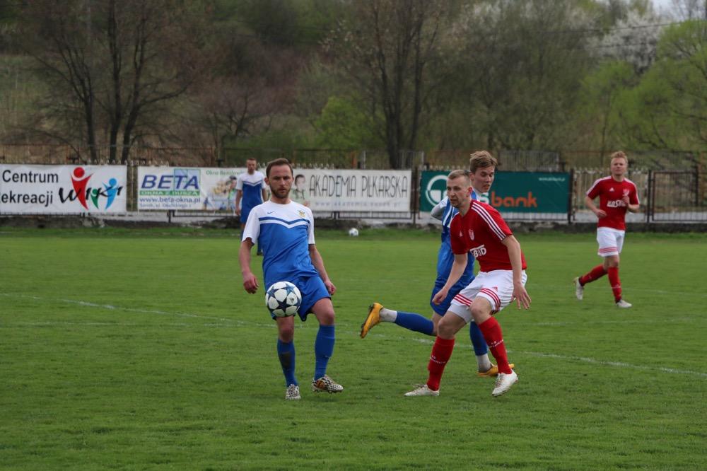 - KS Wiązownica (czerwono-białe stroje) zwyciężył 4-1 w sobotnim wyjazdowym meczu 4 ligi podkarpackiej z LKS-em Pisarowce (fot. Natalia Styś)