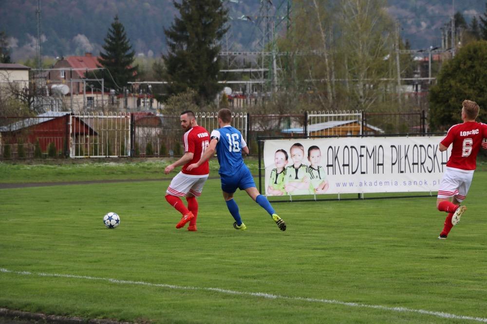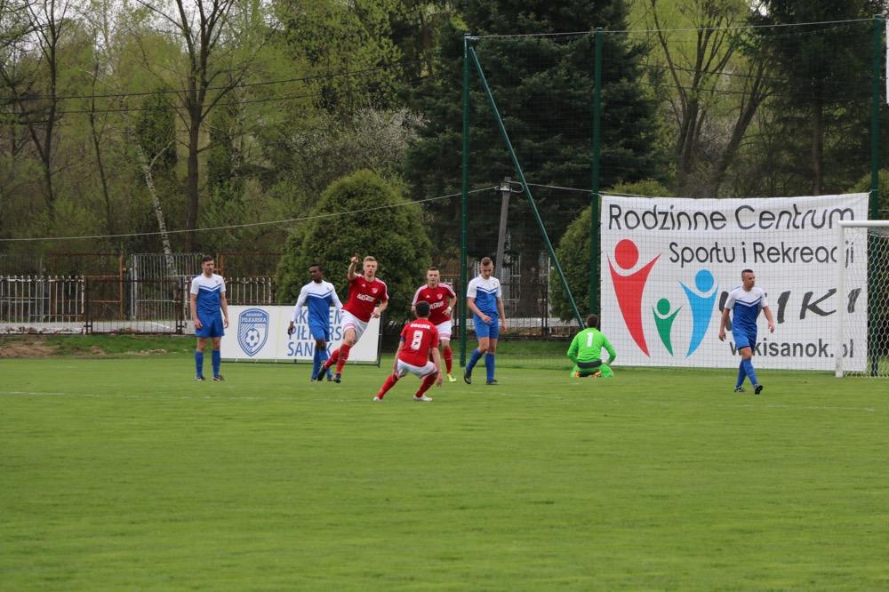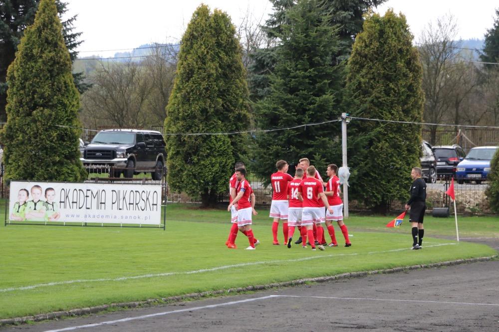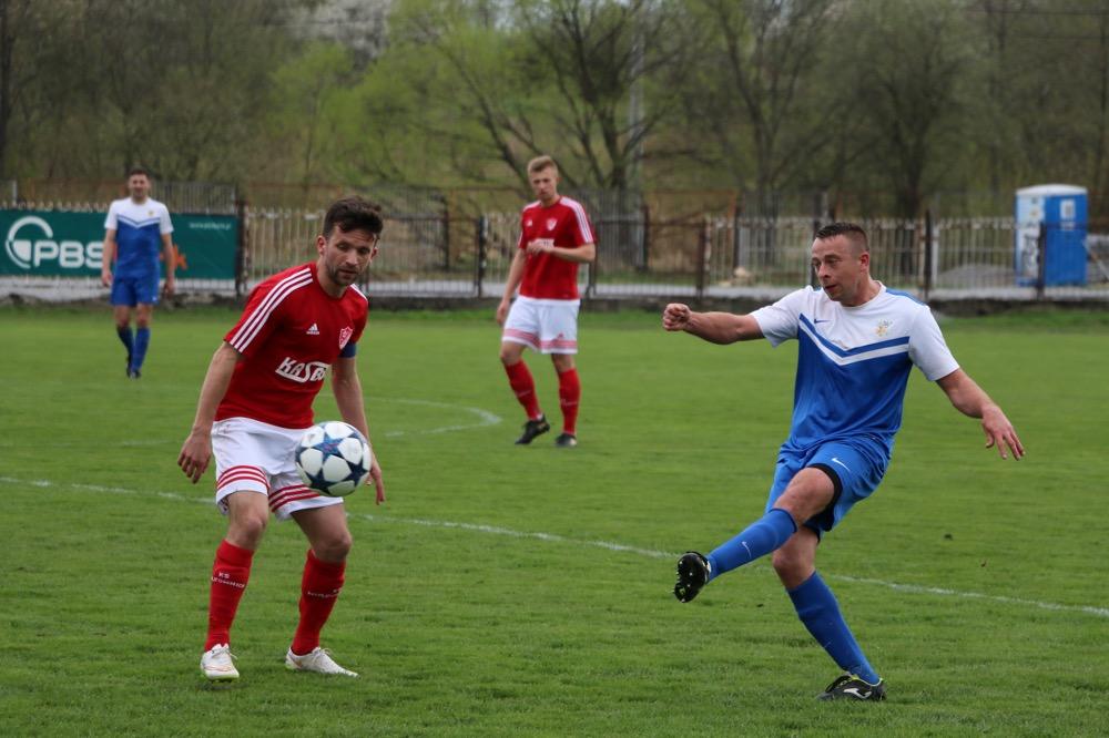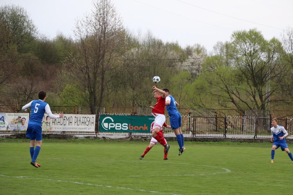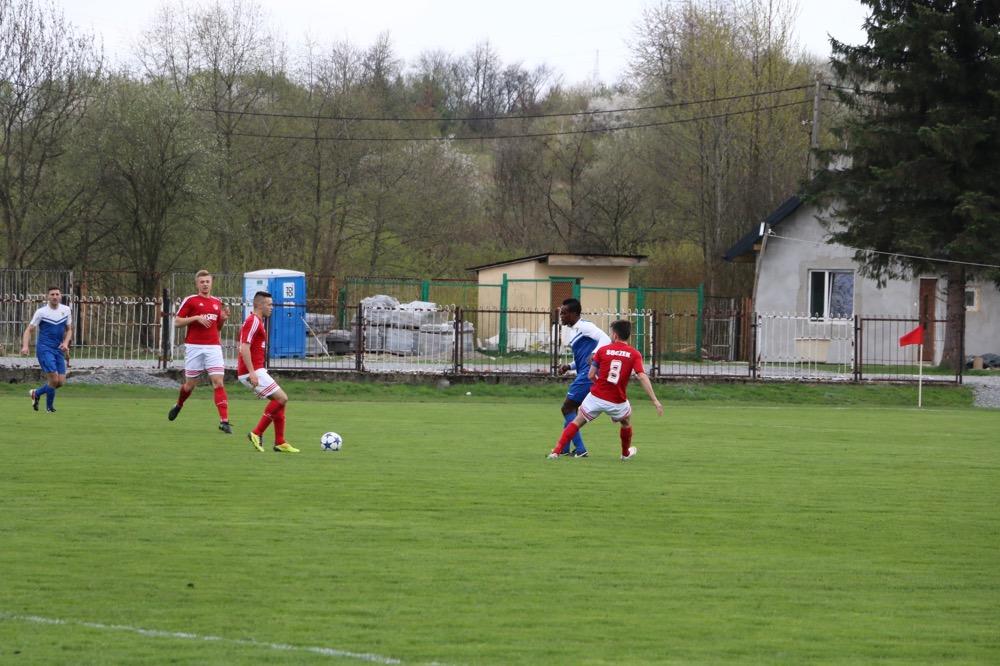 - KS Wiązownica (czerwono-białe stroje) zwyciężył 4-1 w sobotnim wyjazdowym meczu 4 ligi podkarpackiej z LKS-em Pisarowce (fot. Natalia Styś)