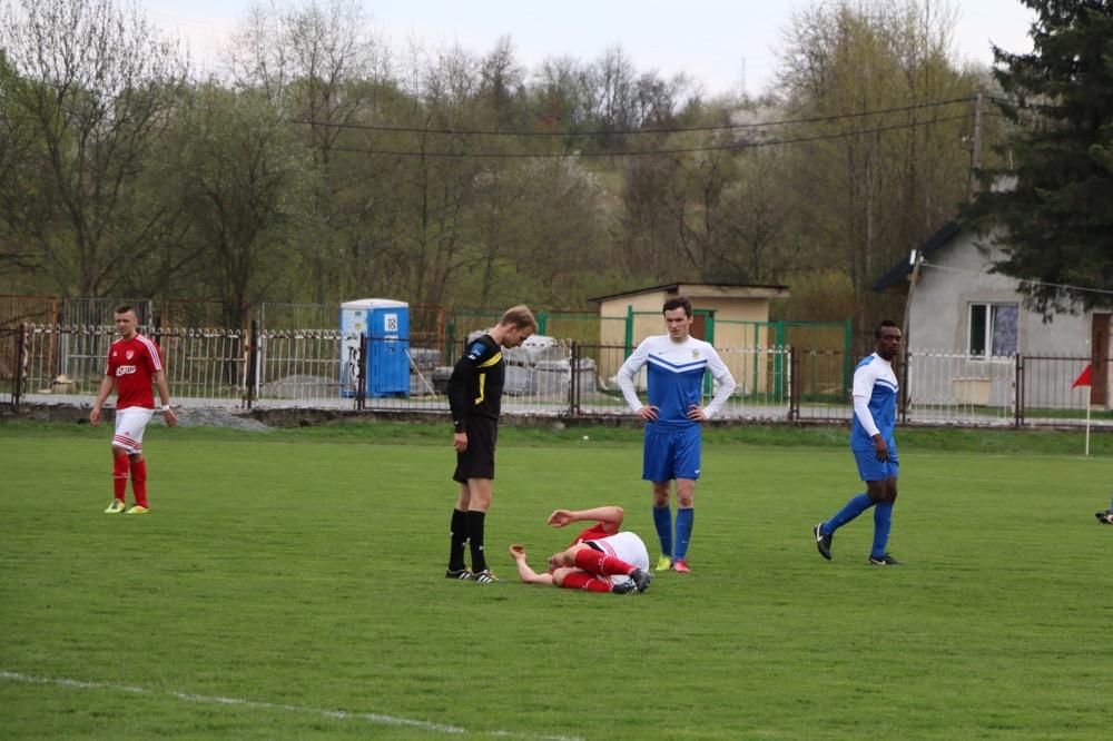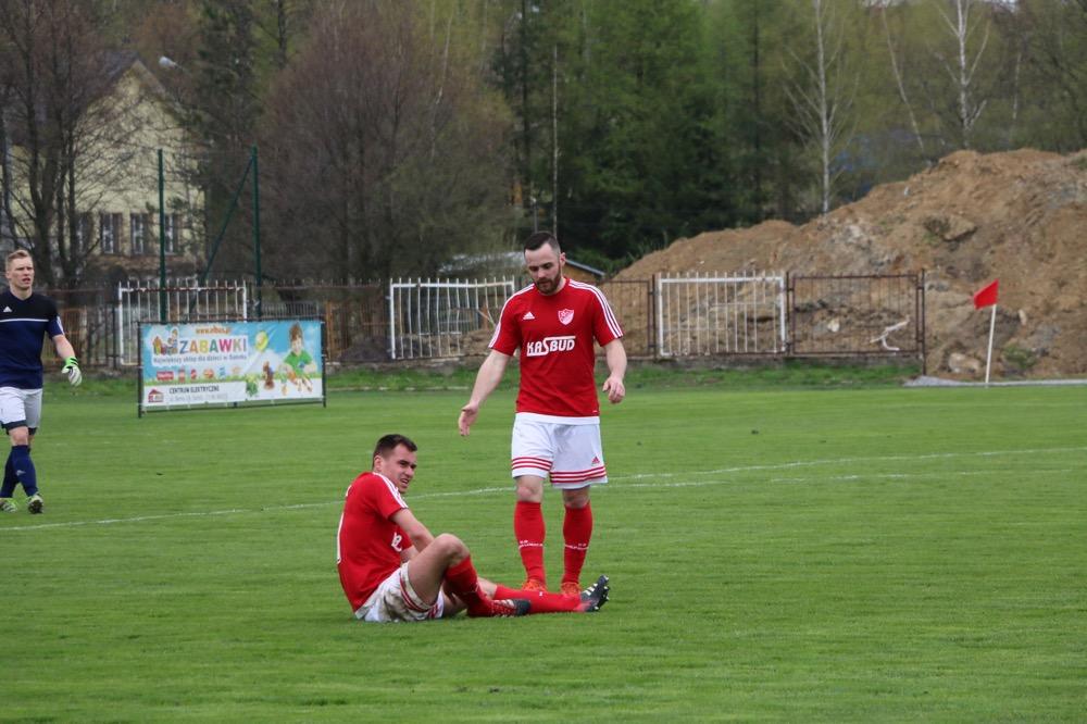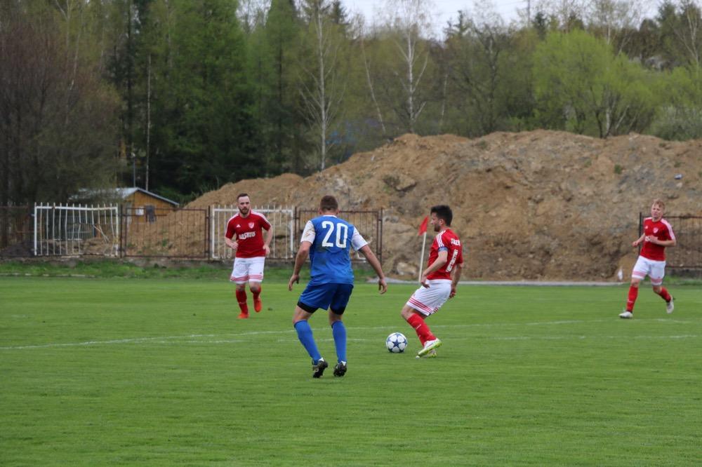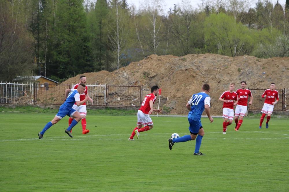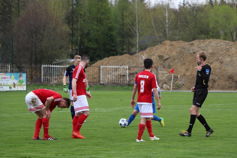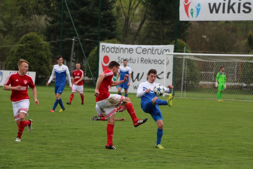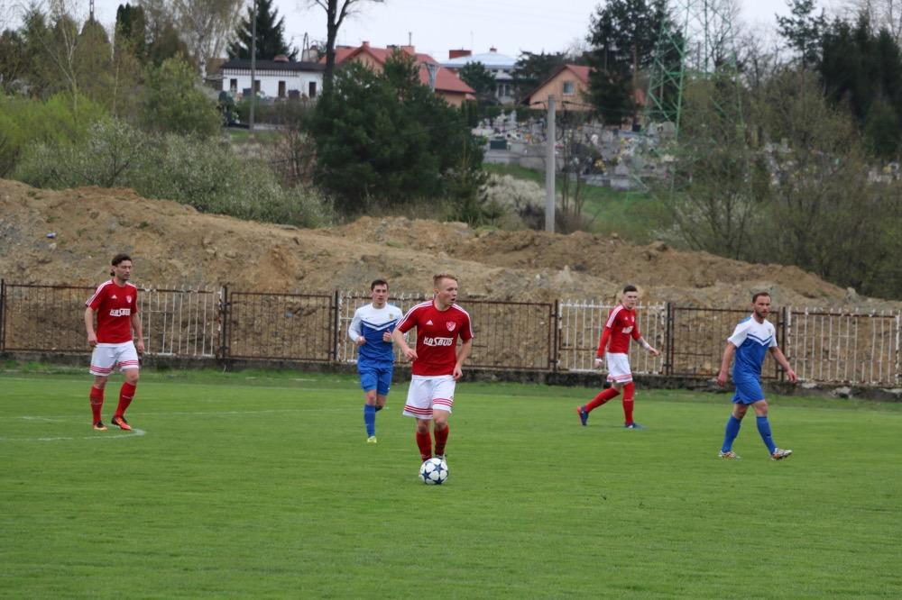 - KS Wiązownica (czerwono-białe stroje) zwyciężył 4-1 w sobotnim wyjazdowym meczu 4 ligi podkarpackiej z LKS-em Pisarowce (fot. Natalia Styś)