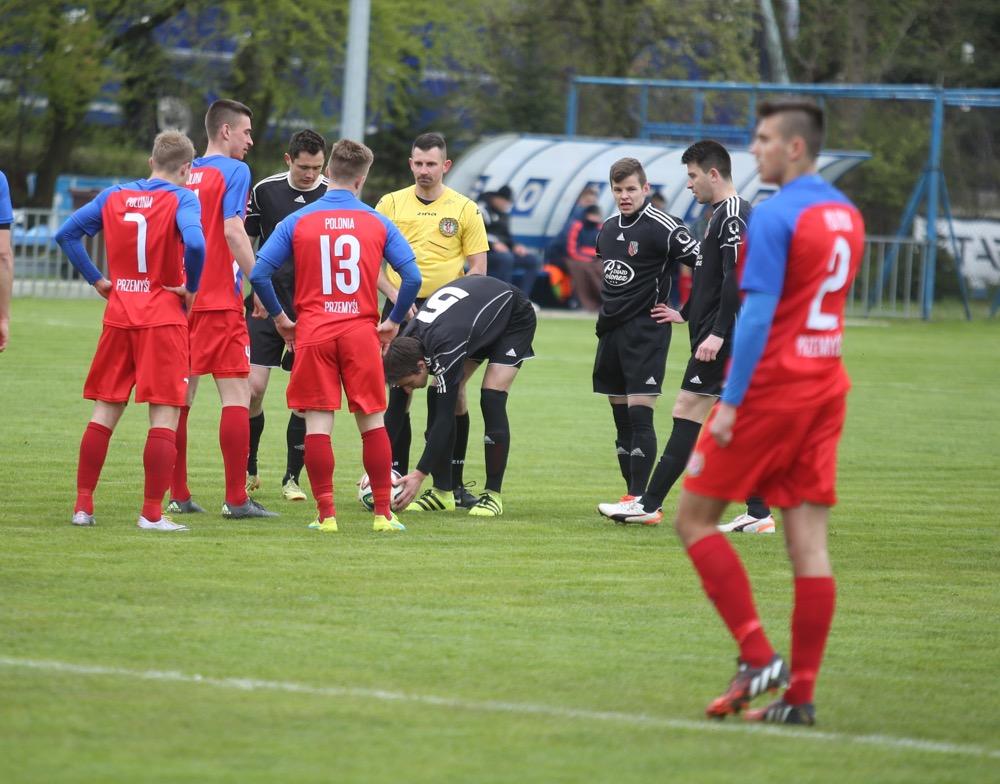 - 19.04.2017, środa: Piast Tuczempy (czarne stroje) zremisował u siebie z Polonią Przemyśl 2-2 w meczu 24. kolejki rozgrywek 4 ligi podkarpackiej (fot. Patryk Górecki)