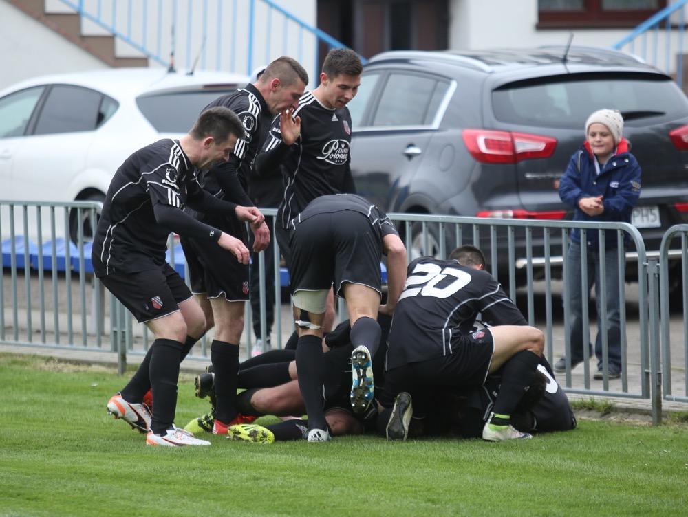 - 19.04.2017, środa: Piast Tuczempy (czarne stroje) zremisował u siebie z Polonią Przemyśl 2-2 w meczu 24. kolejki rozgrywek 4 ligi podkarpackiej (fot. Patryk Górecki)