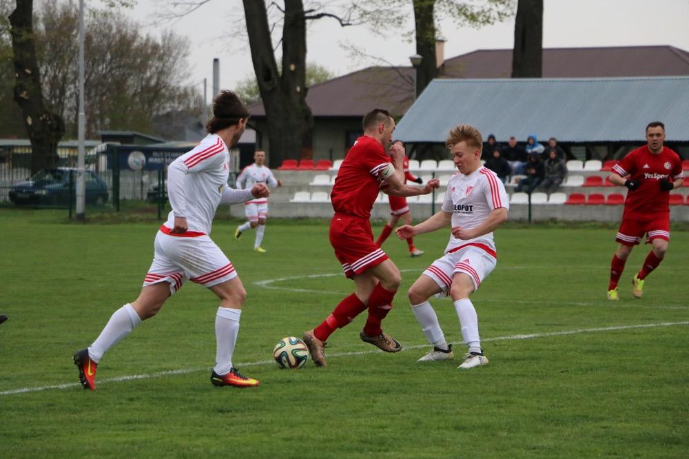 - 19.04.2017, środa: KS Wiązownica (białe stroje) pewnie pokonał Rzemieślnik Pilzno w meczu 24. kolejki 4 ligi podkarpackiej (fot. Natalia Styś)