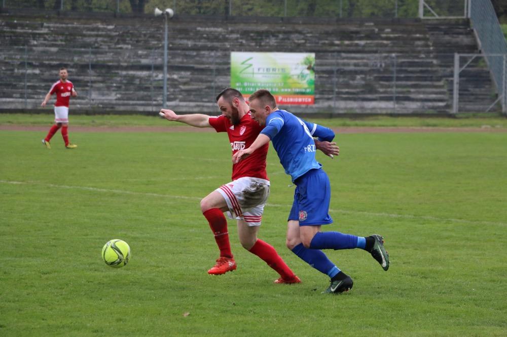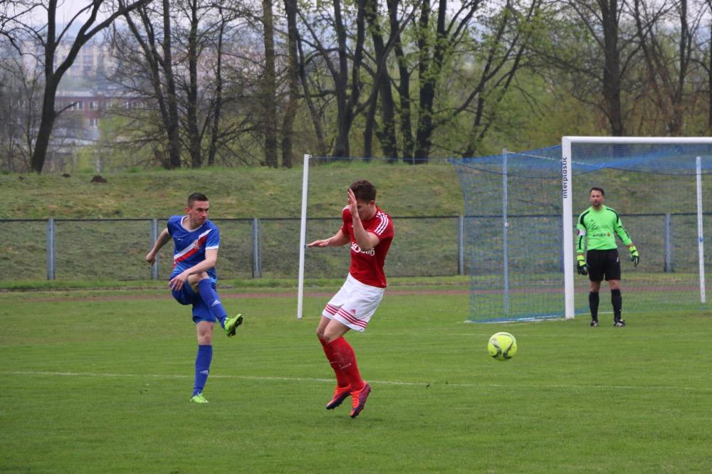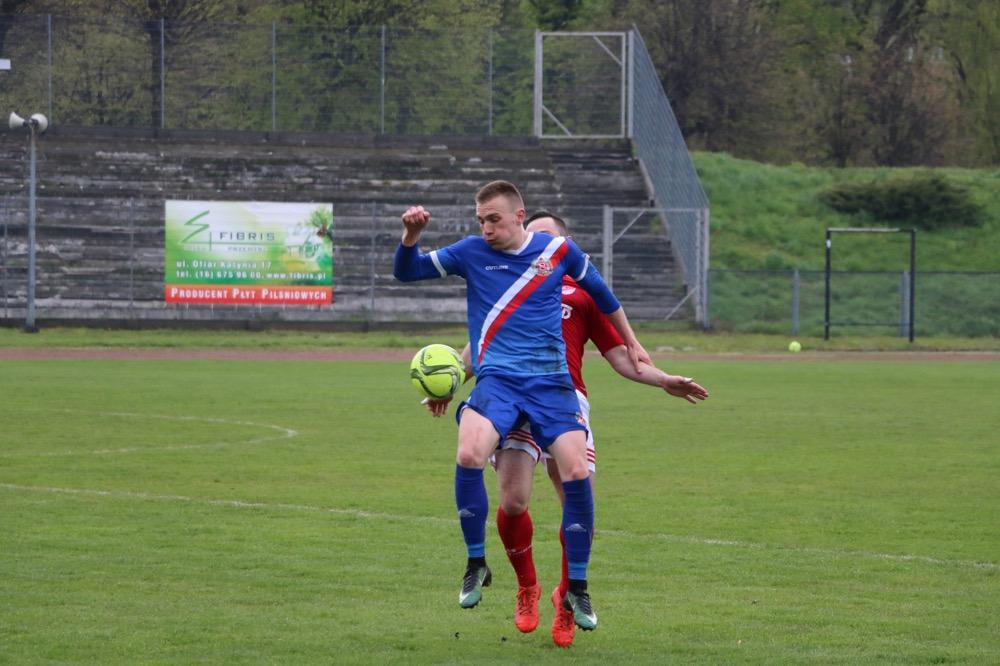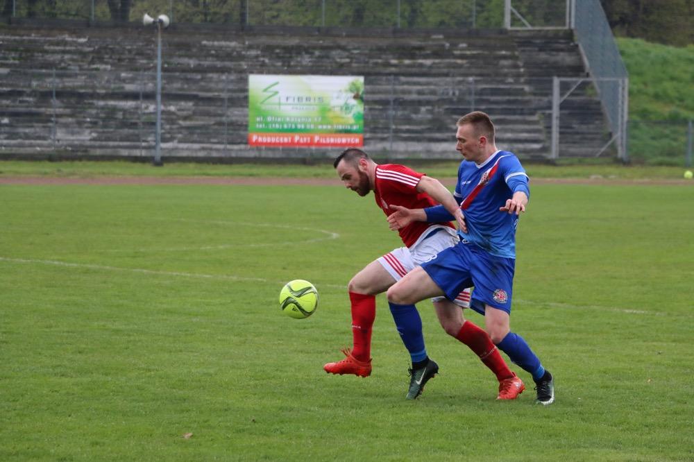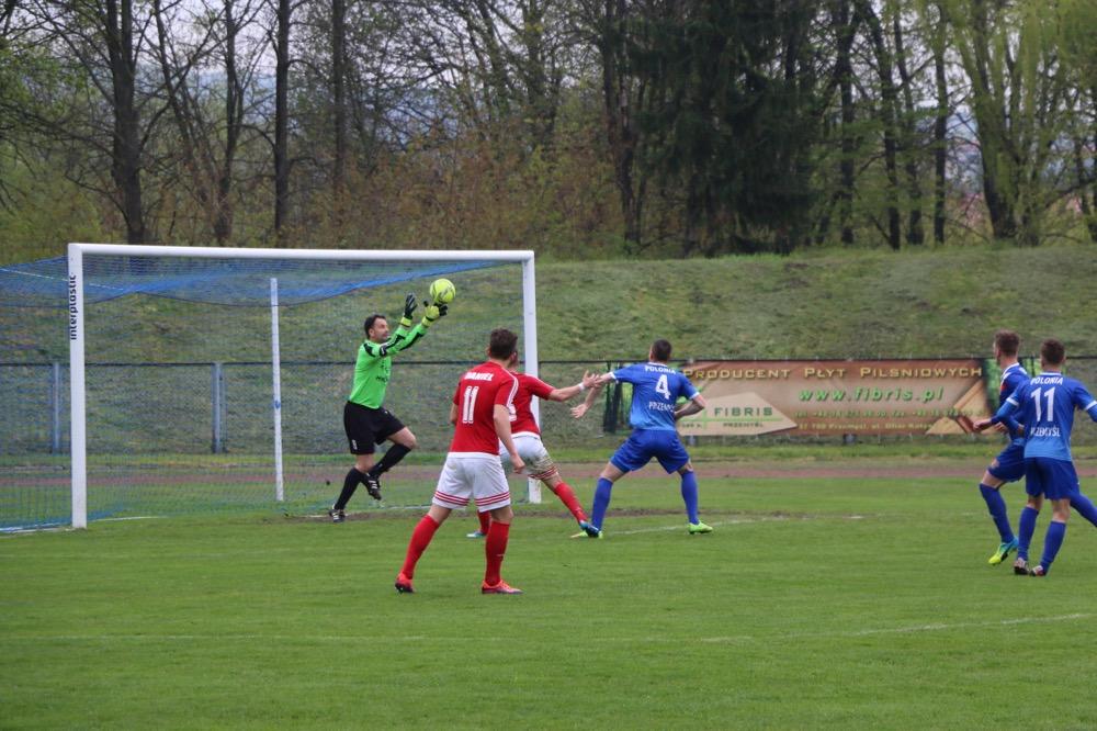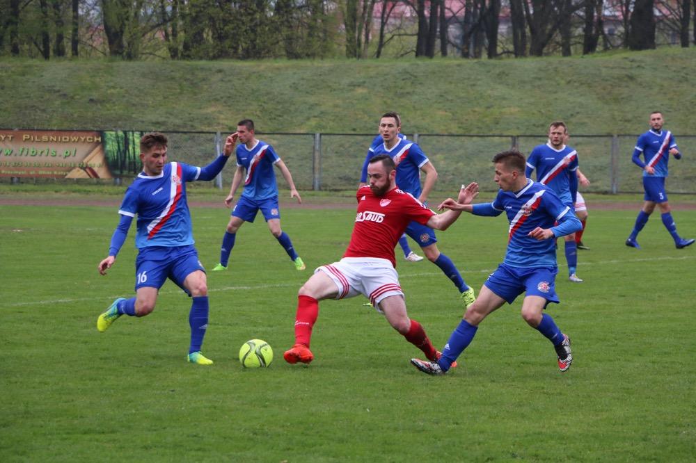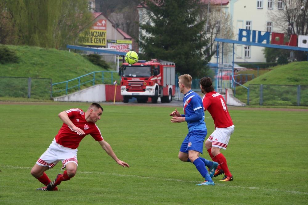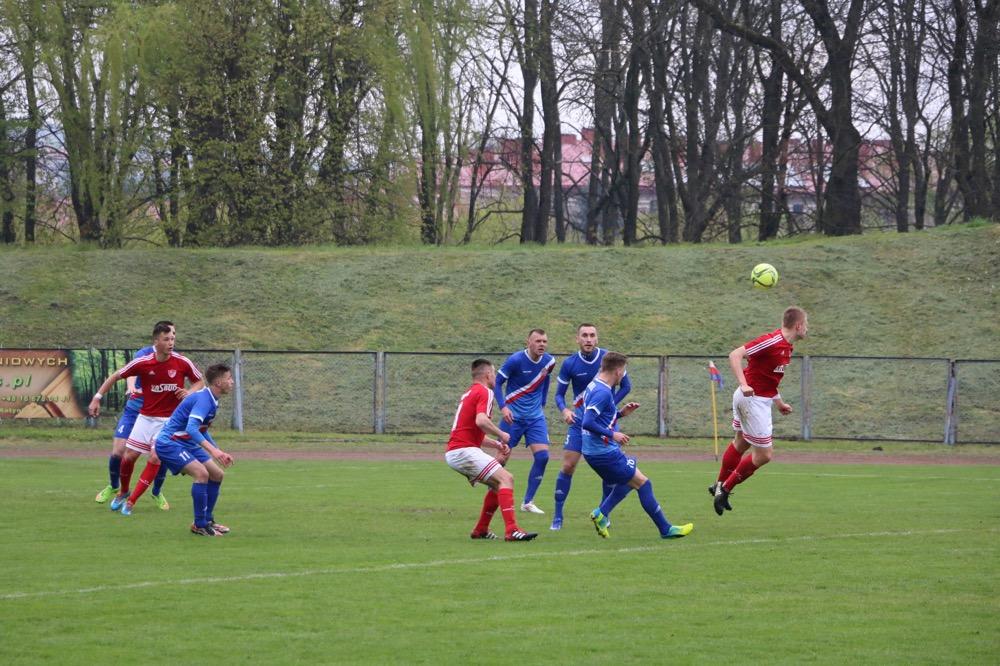 - 22.04.2017, sobota: piłkarze Polonii Przemyśl (niebiesko-czerwone stroje) wygrali 3-0 z KS-em Wiązownica w meczu 4 ligi podkarpackiej (fot. Natalia Styś)