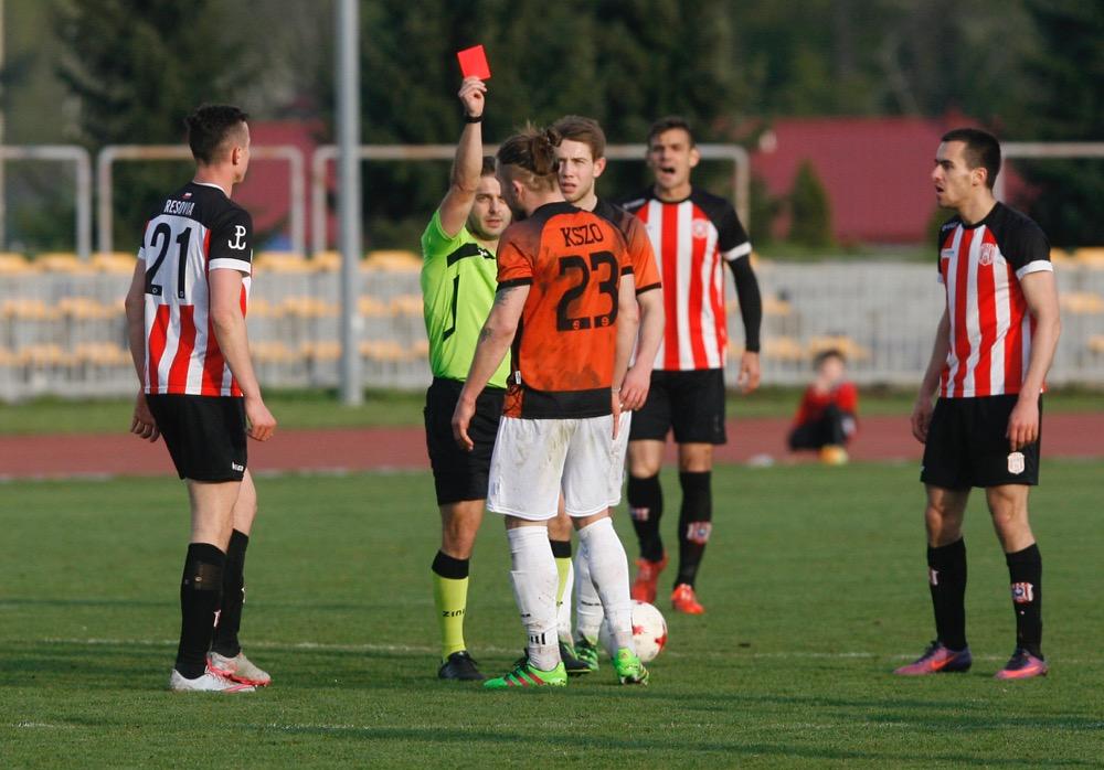 Bardzo dobrze znany na Podkarpaciu zawodnik, który ma za sobą grę m.in. w Stali Rzeszów i Siarce Tarnobrzeg, dostał czerwoną kartkę tuż po bramce strzelonej przez KSZO.