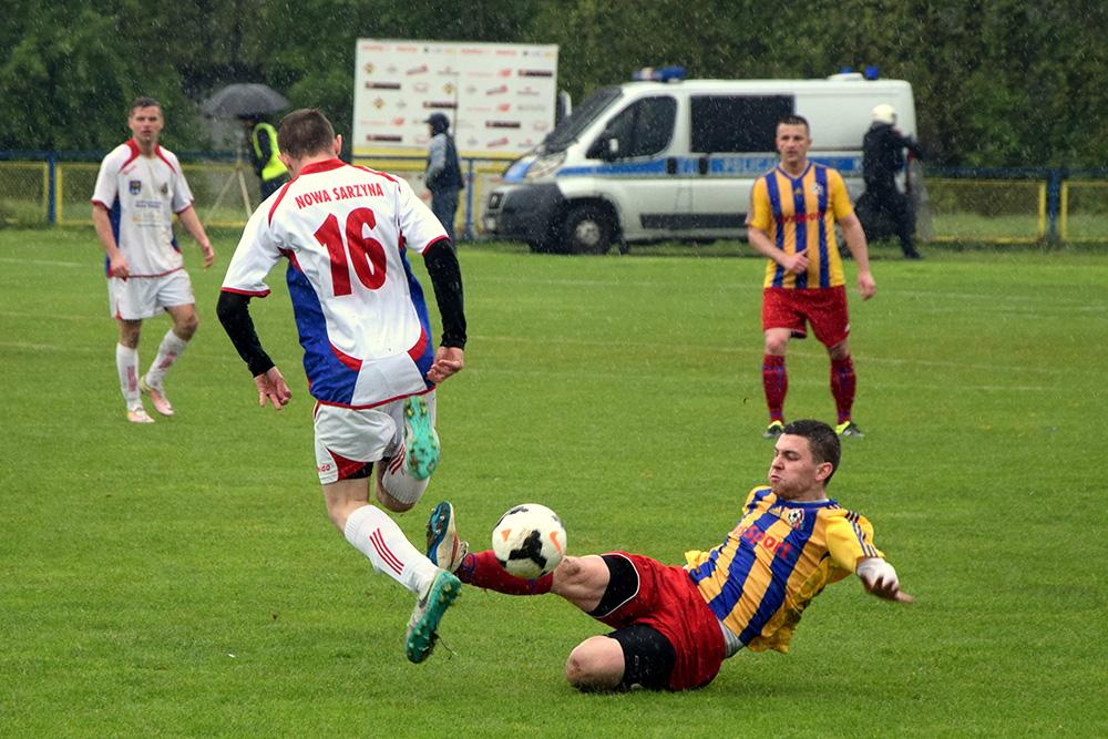 - 30.04.2017, niedziela: Unia Nowa Sarzyna (białe stroje) wygrała 2-1 w derbowym meczu z Pogonią Leżajsk. Spotkanie zostało rozegrane w Leżajsku (fot. Marta Pietrycha)