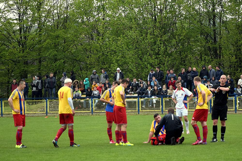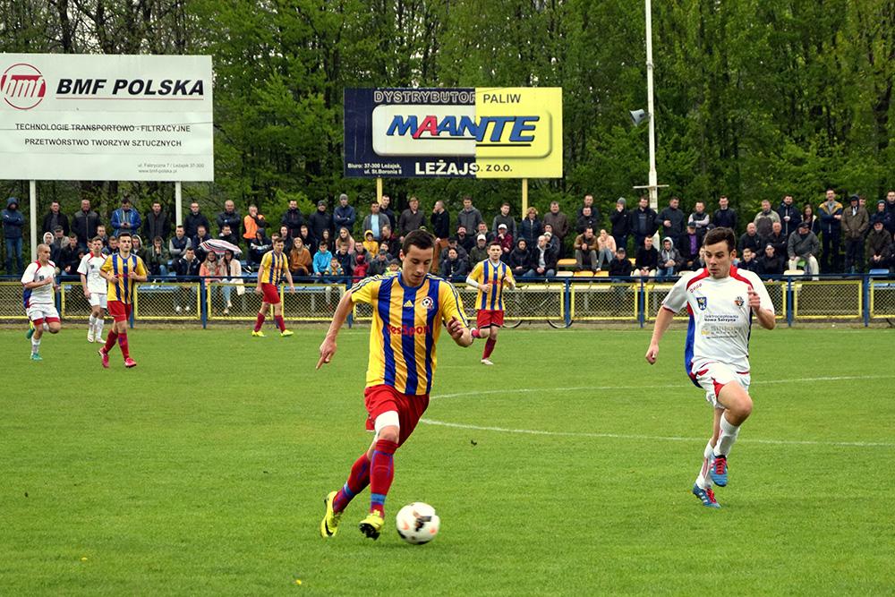 - 30.04.2017, niedziela: Unia Nowa Sarzyna (białe stroje) wygrała 2-1 w derbowym meczu z Pogonią Leżajsk. Spotkanie zostało rozegrane w Leżajsku (fot. Marta Pietrycha)
