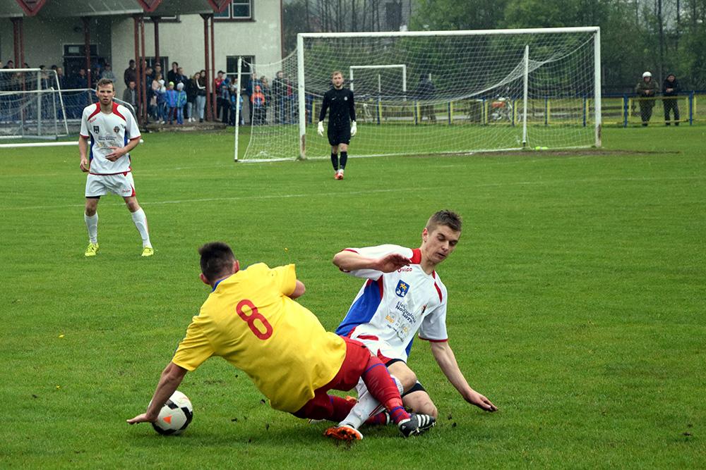 - 30.04.2017, niedziela: Unia Nowa Sarzyna (białe stroje) wygrała 2-1 w derbowym meczu z Pogonią Leżajsk. Spotkanie zostało rozegrane w Leżajsku (fot. Marta Pietrycha)