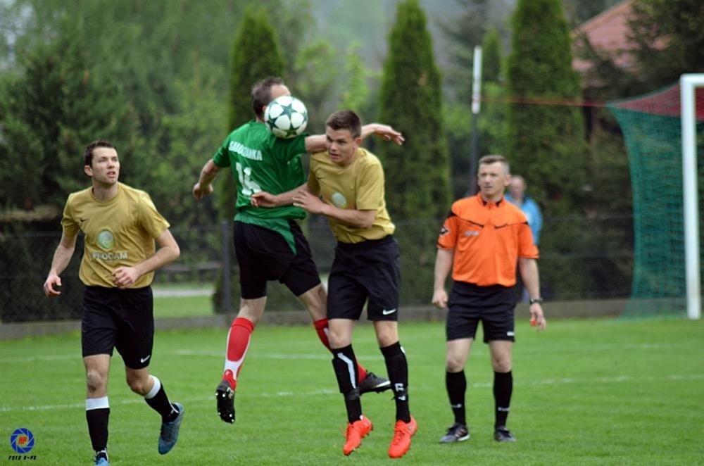 - LKS Skołoszów (złoto-czarne stroje) wygrali 1-0 w wyjazdowym meczu klasy O Jarosław z Sanoczanką Święte (fot. Adrianna Popkiewicz)