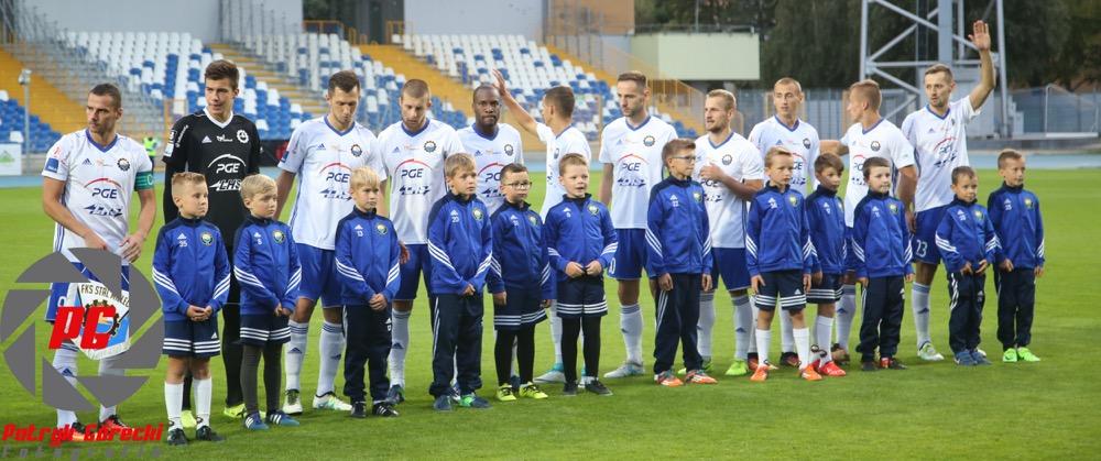 - 23 sierpnia 2017, środa: Stal Mielec (biało-niebieskie stroje) przegrała przed własną publicznością z Pogonią Siedlce 2-3 (fot. Patryk Górecki)