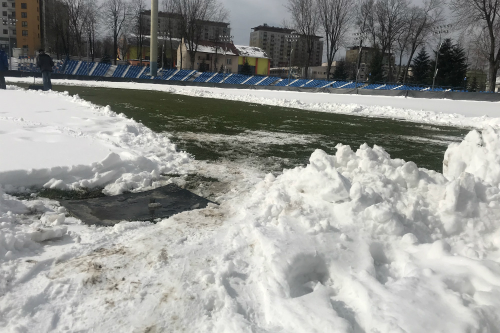 Za wszelką cenę grać chce Stal Rzeszów, która już w nadchodzący weekend zmierzyć ma się z Wisłą Sandomierz. Murawa Stadionu Miejskiego jednak prawie w całości przykryta jest śniegiem i póki, co nie wygląda to najlepiej.