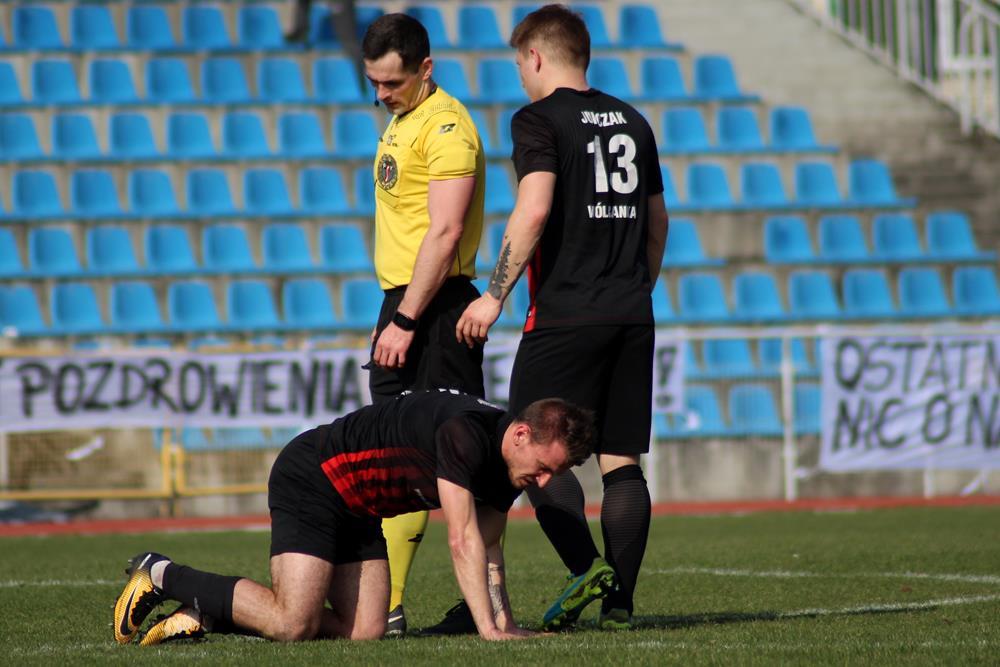 - Piłkarze Wólczanki Wólka Pełkińska (czarno-czerwone stroje) wygrali 1-0 z Wisłą Sandomierz w wyjazdowym meczu 3 ligi gr. IV. Gola na wagę trzech punktów zdobył w 91. minucie Jakub Więcek (fot. Radek Kuśmierz)