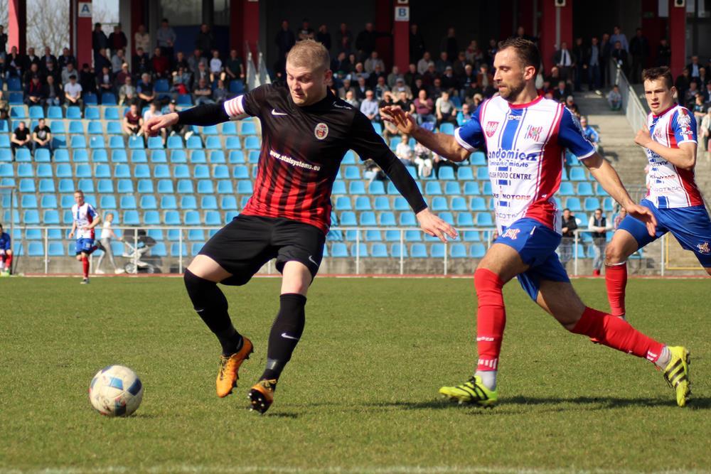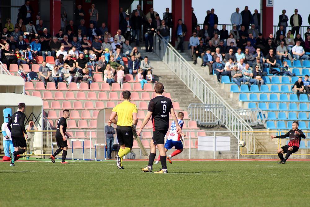 - Piłkarze Wólczanki Wólka Pełkińska (czarno-czerwone stroje) wygrali 1-0 z Wisłą Sandomierz w wyjazdowym meczu 3 ligi gr. IV. Gola na wagę trzech punktów zdobył w 91. minucie Jakub Więcek (fot. Radek Kuśmierz)