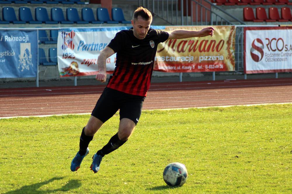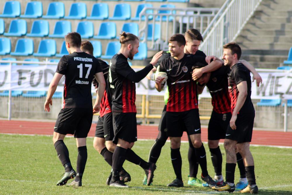 - Piłkarze Wólczanki Wólka Pełkińska (czarno-czerwone stroje) wygrali 1-0 z Wisłą Sandomierz w wyjazdowym meczu 3 ligi gr. IV. Gola na wagę trzech punktów zdobył w 91. minucie Jakub Więcek (fot. Radek Kuśmierz)